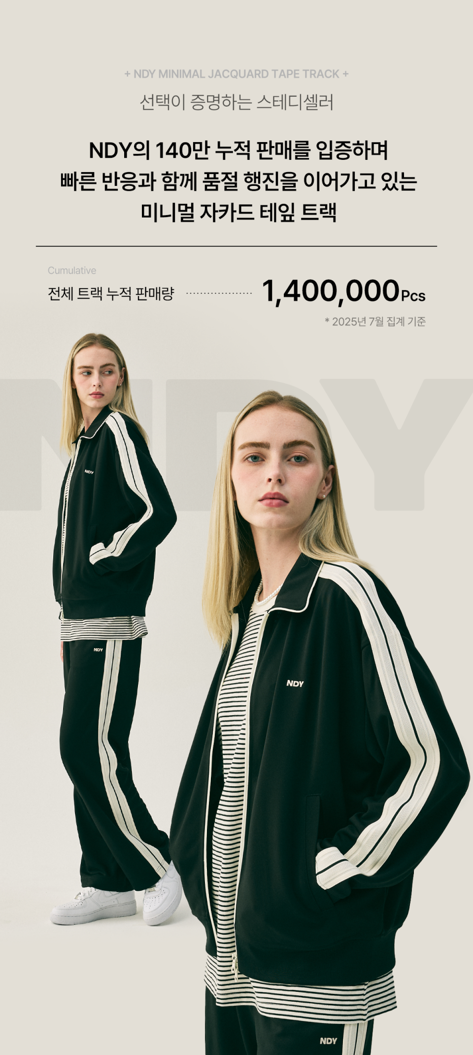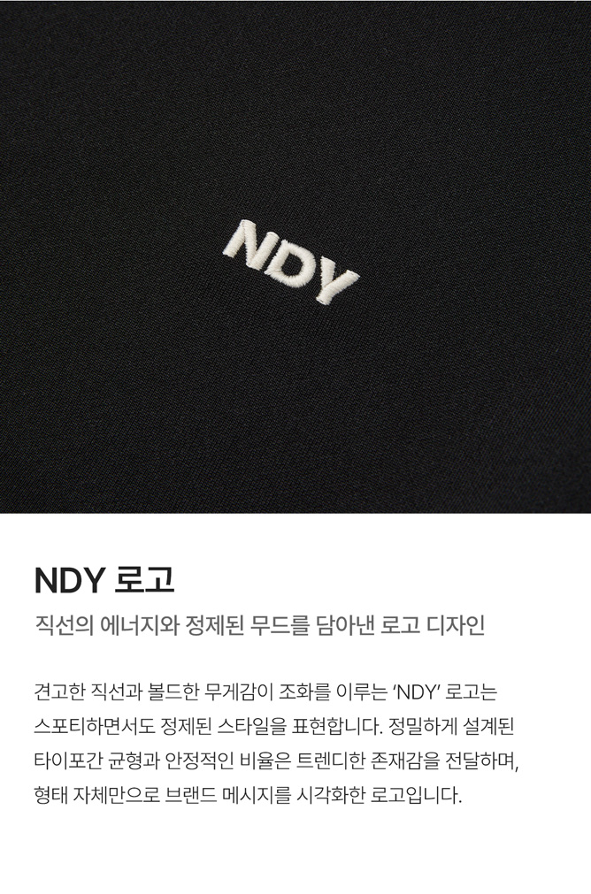 엔디와이(NDY)는 Not Defined Yet'의 줄임말로 정의되지 않은 상태를 의미하며, 동시에 무한한 가능성을 상징합니다. 단순한 트레이닝복을 넘어, 클래식하고 위트 있는 디자인과 감각적인 핏으로 아무것도 규정하지 않음으로써 모든 것을 수용하는 브랜드입니다.
