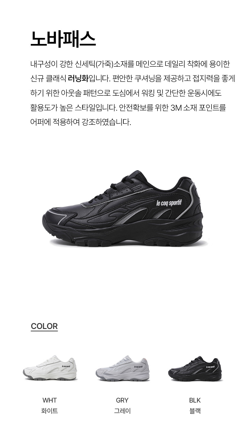 | 소재 | [BLK0]겉감재료:합성가죽(100%)+폴리에스터(100%),[BLK0]안감재료:폴리에스터(100%),[BLK0]창재료:파일론+합성고무,[GRY0]겉감재료:합성가죽(100%)+폴리에스터(100%),[GRY0]안감재료:폴리에스터(100%),[GRY0]창재료:파일론+합성고무,[WHT0]겉감재료:합성가죽(100%)+폴리에스터(100%),[WHT0]안감재료:폴리에스터(100%),[WHT0]창재료:파일론+합성고무 (입고 시기에 따라 정보가 상이할 수 있어, 수령하신 상품의 라벨을 참고하시기 바랍니다.) |