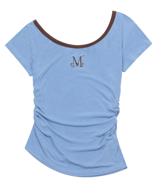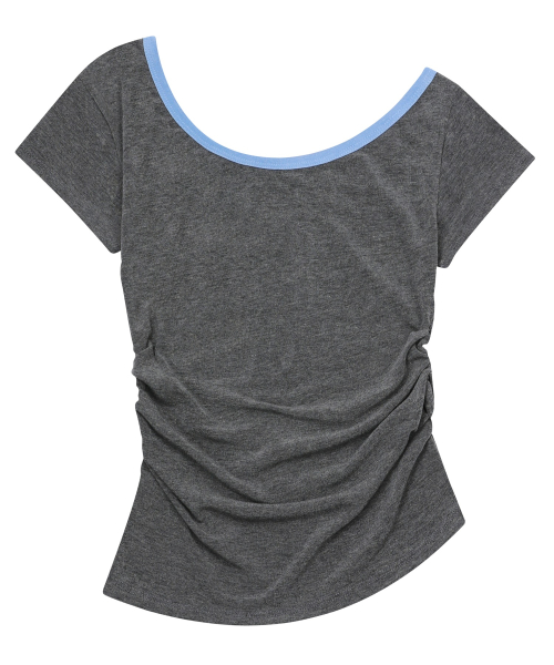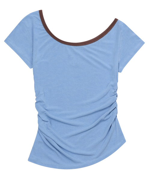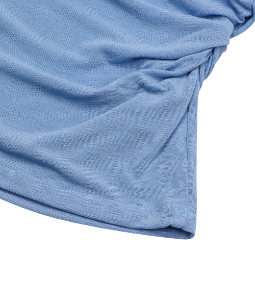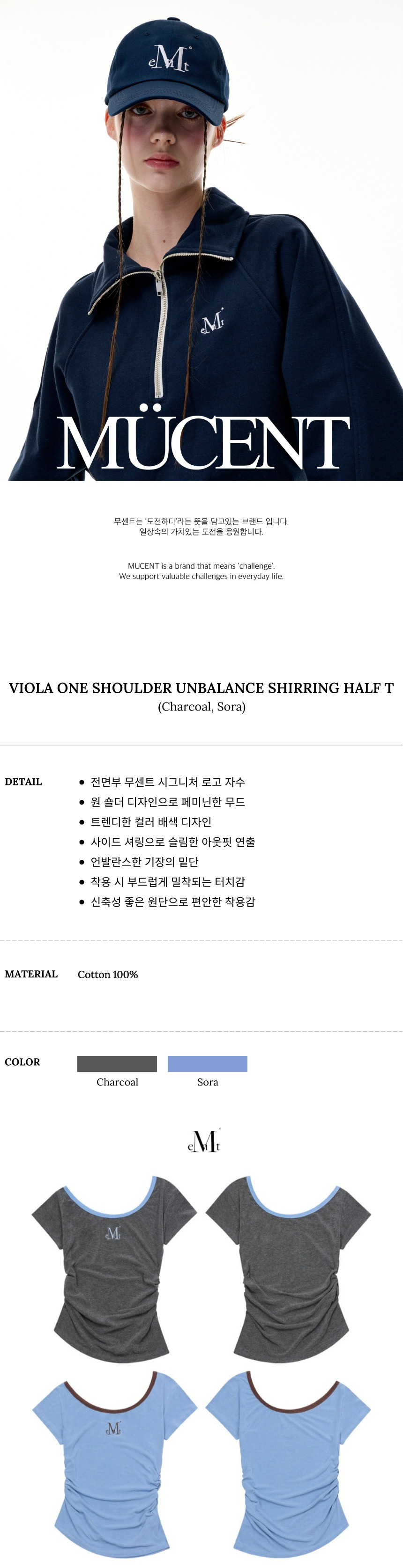 비올라 원 숄더 언발란스 셔링 반팔 티 (2컬러)