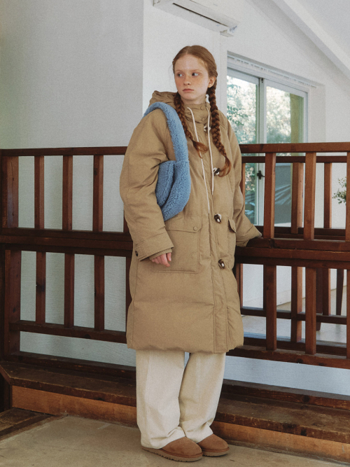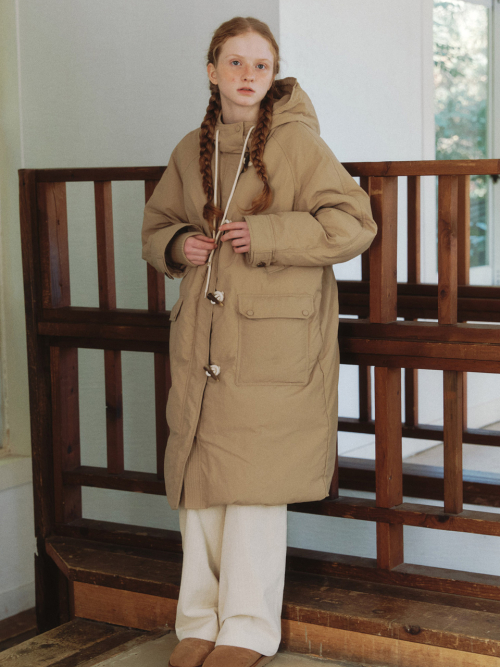 FishTail Duck Down Long Parka Field Coat - beige