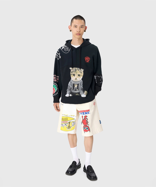 (U) 오가닉 코튼 프린트 플리스 조깅 팬츠 블랙 ORGANIC COTTON FLEECE JOGGING PANTS BLACK