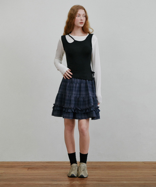 W 커브드 버튼 프릴 셔츠 (WHITE)