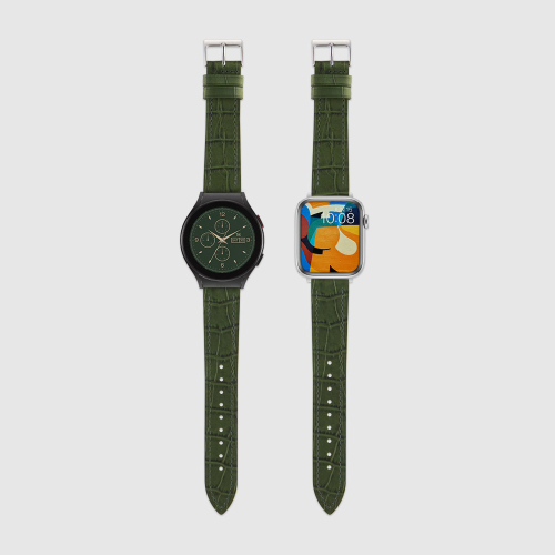 매트 크로코패턴 이탈리아 소가죽 애플워치 스트랩 3 울트라 2 SE2 갤럭시워치 8 호환 밴드 - 그린