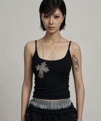 Black leopard cross necklace sleeveless