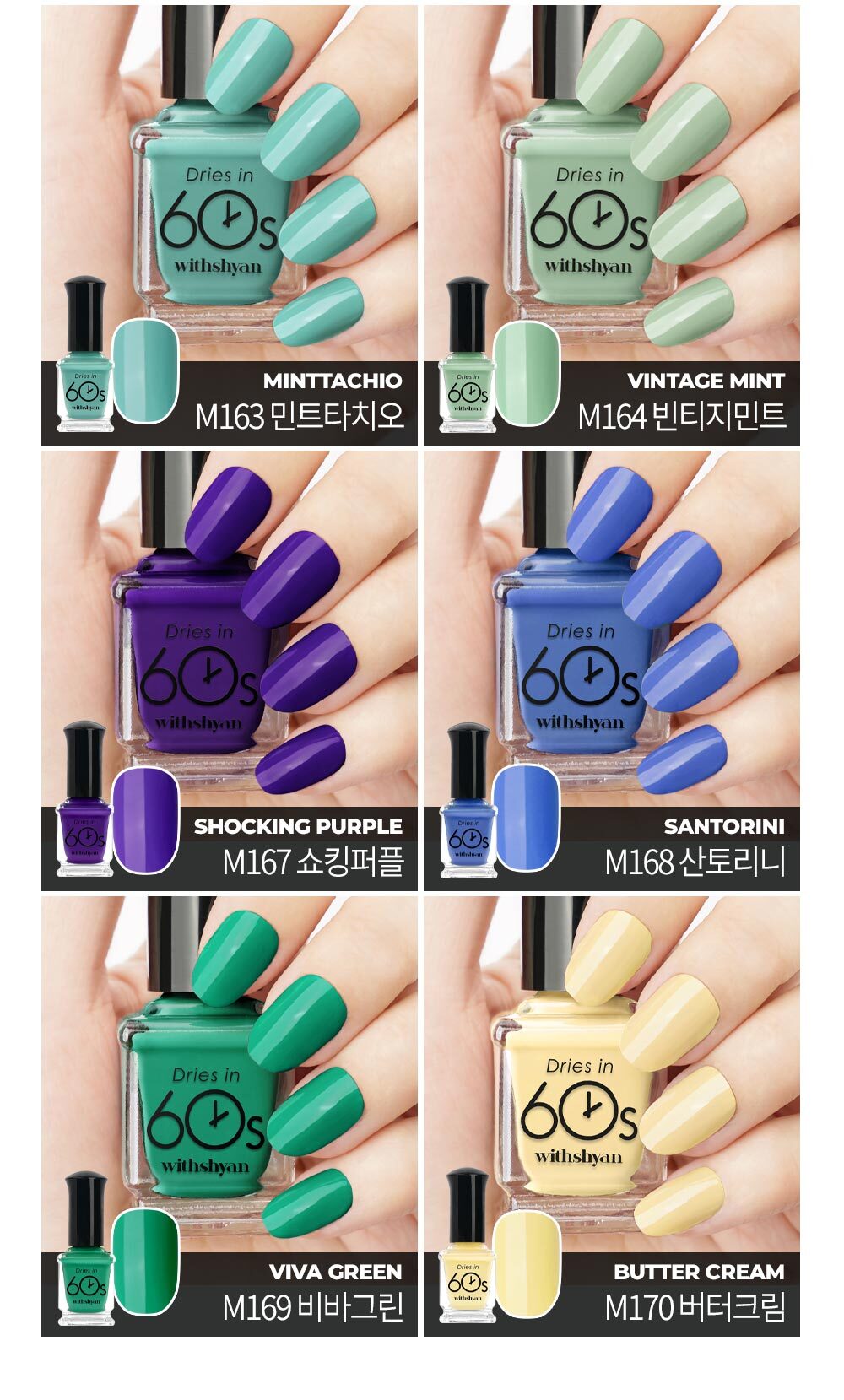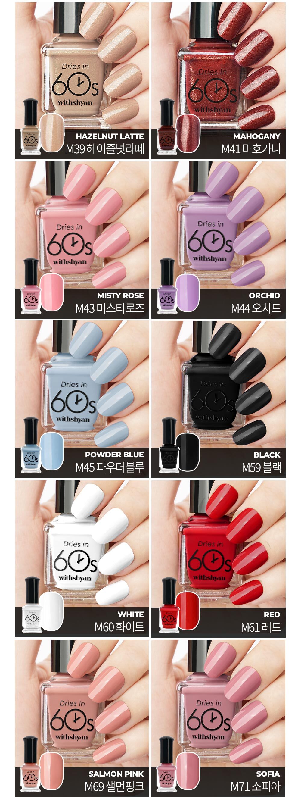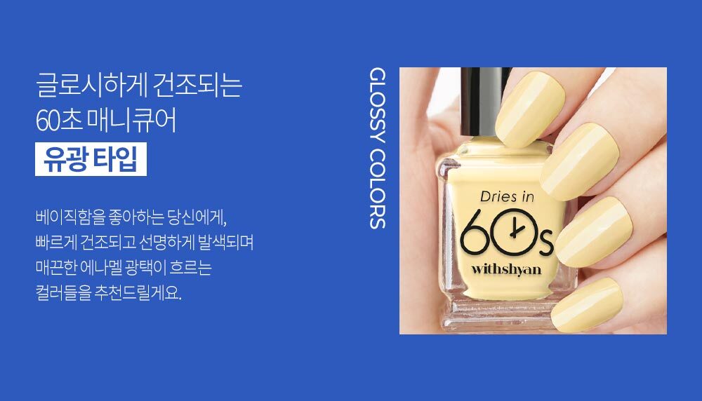 위드샨(WITHSHYAN)은 60초 만에 마르는 매니큐어 등 누구나 쉽고 편안하게 사용할 수 있는 셀프 네일 제품을 선보입니다.