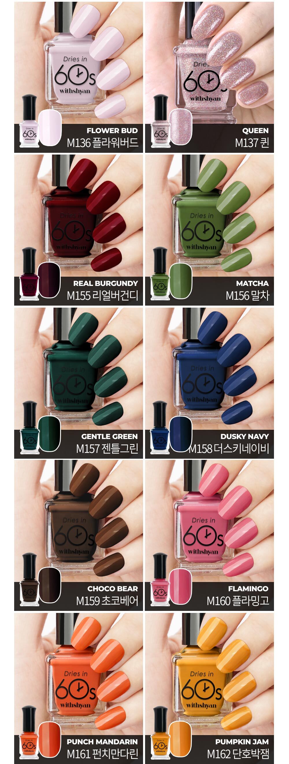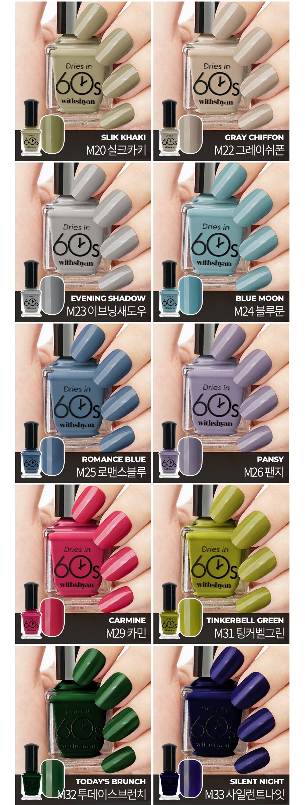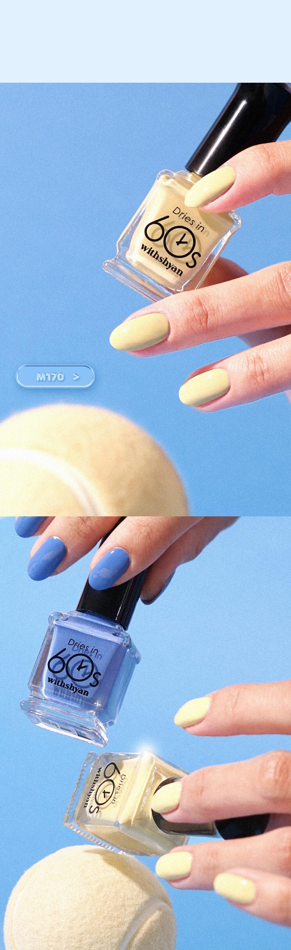 위드샨(WITHSHYAN)은 60초 만에 마르는 매니큐어 등 누구나 쉽고 편안하게 사용할 수 있는 셀프 네일 제품을 선보입니다.