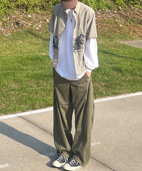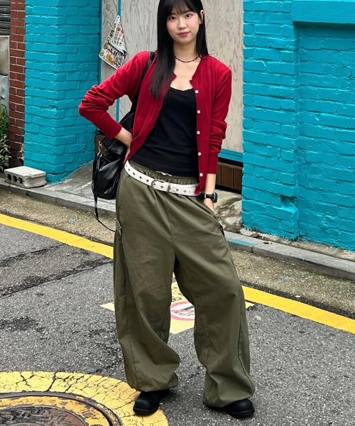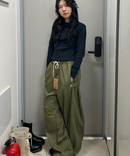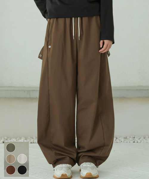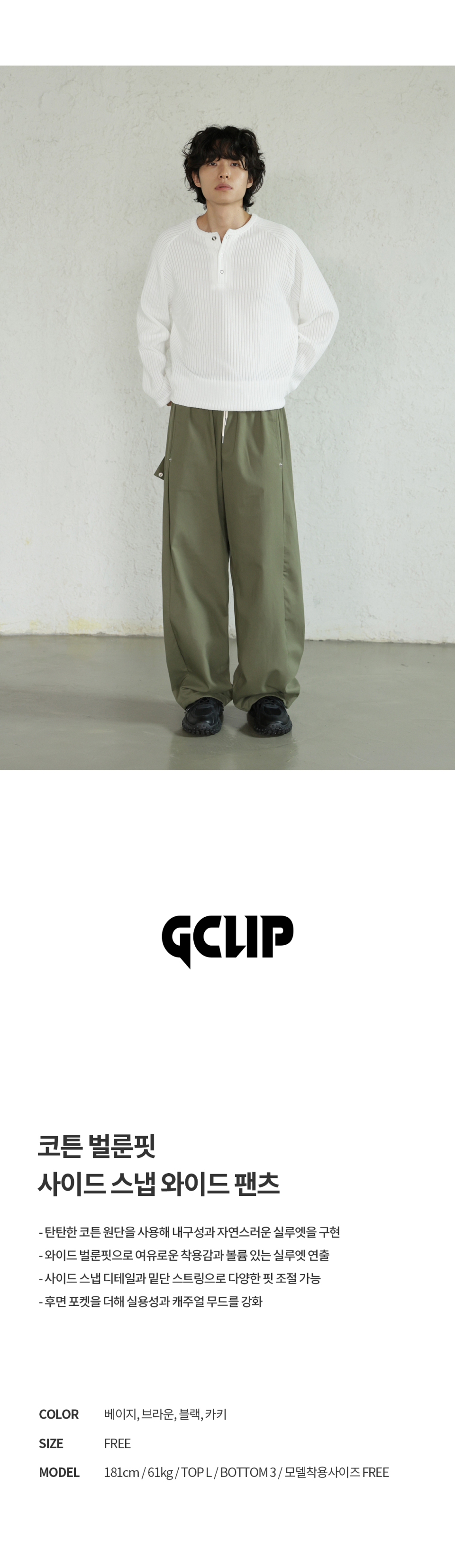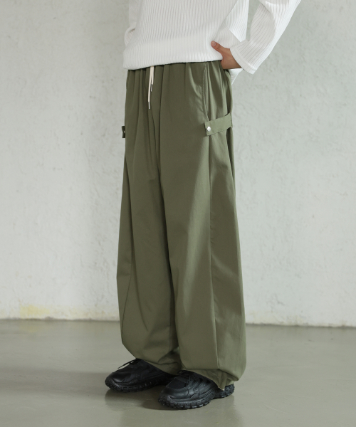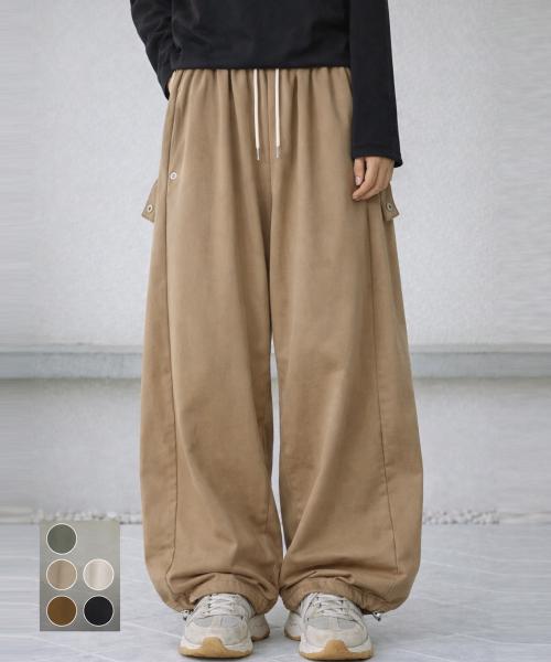 코튼 벌룬핏 사이드 스냅 와이드 팬츠_4Color