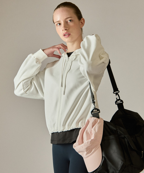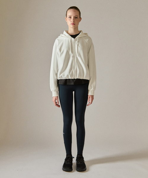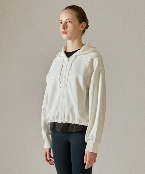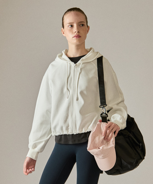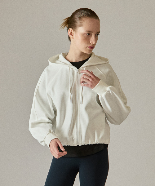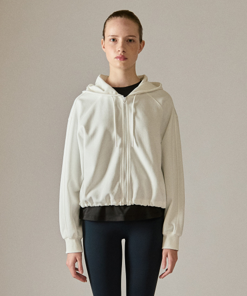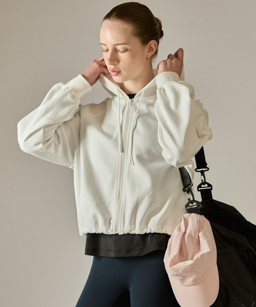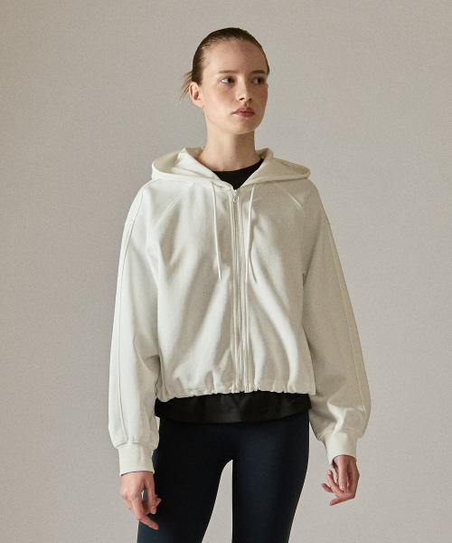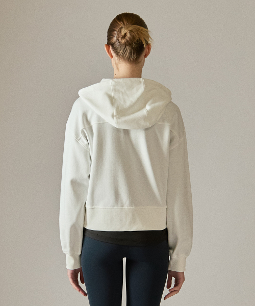 여성 특양면 크롭 후드 스웨트집업 화이트 LZJP0211