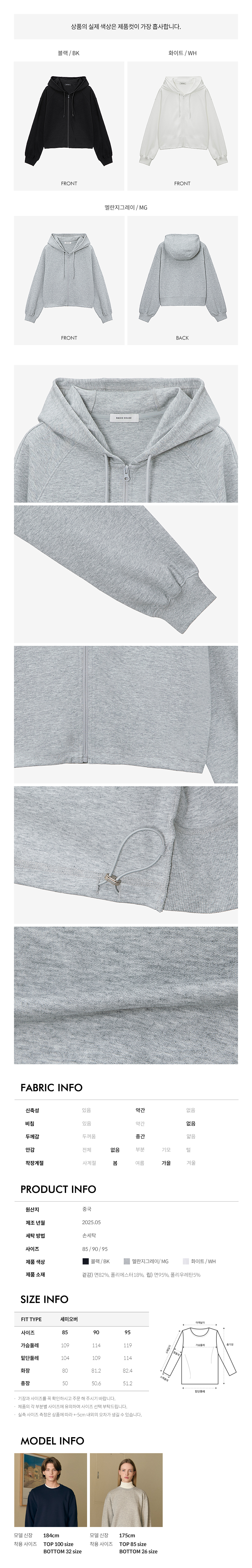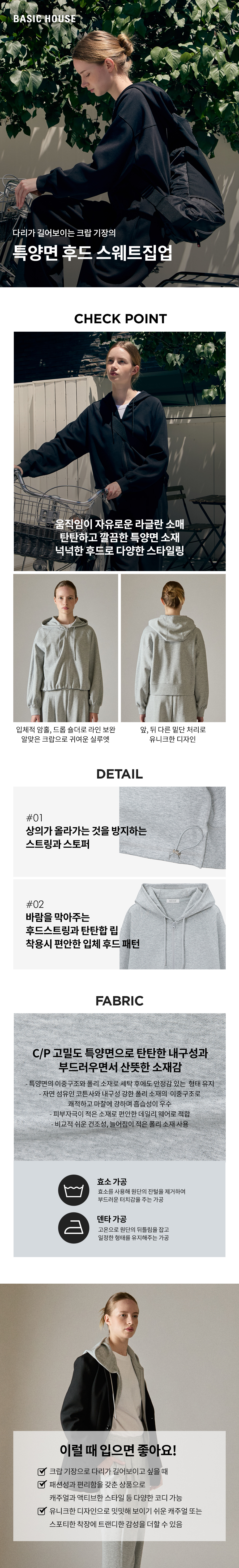 여성 특양면 크롭 후드 스웨트집업 멜란지그레이 LZJP0211