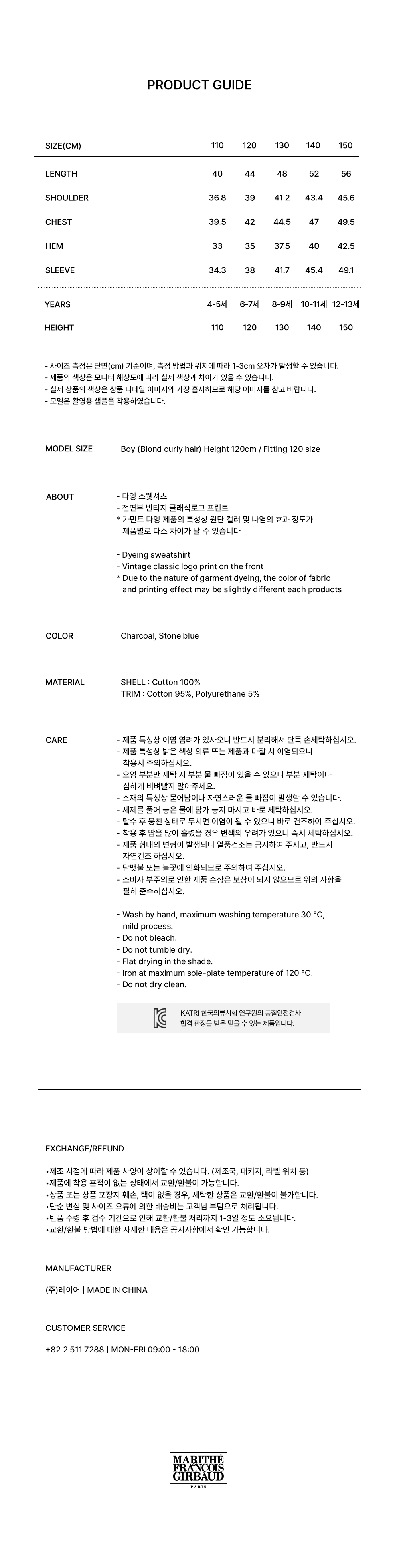 마리떼 키즈(MARITHÉ KIDS)는 마리떼 프랑소와 저버 특유의 프렌치 감성과 무드를 담은 키즈 라인. 마리떼 어덜트 라인과 함께 패밀리 룩을 연출할 수 있는 시그니처 아이템 미니 버전과, 아이들의 동심을 닮은 그래픽이 특징입니다.