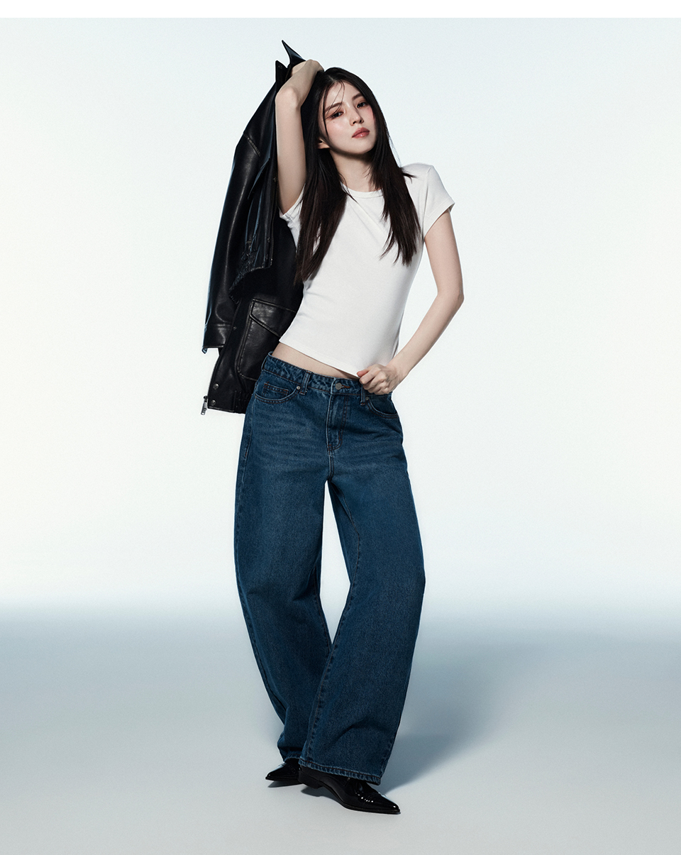 우먼즈 커브드 데님 팬츠 [라이트 인디고]