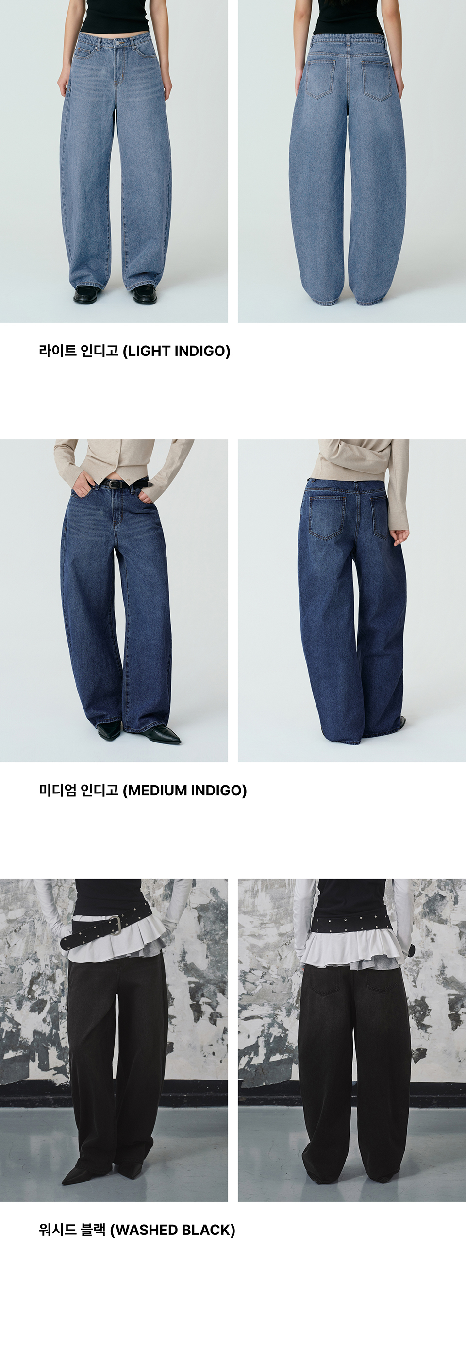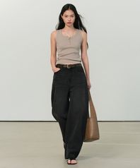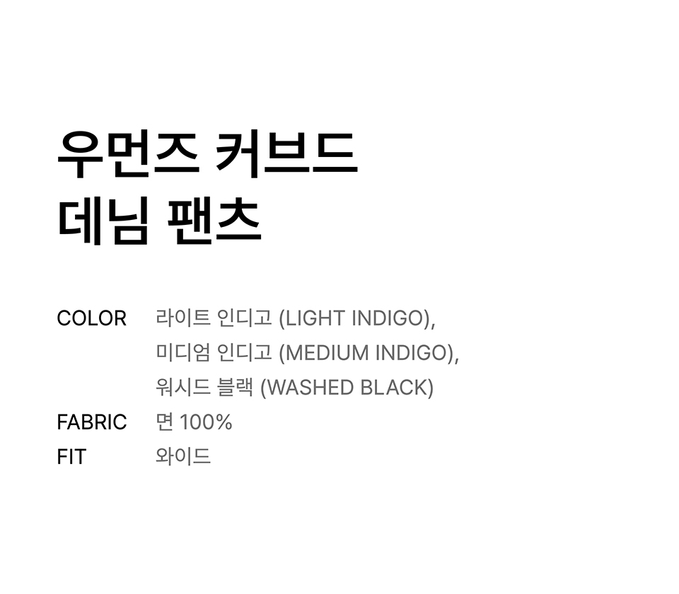 우먼즈 커브드 데님 팬츠 [워시드 블랙]