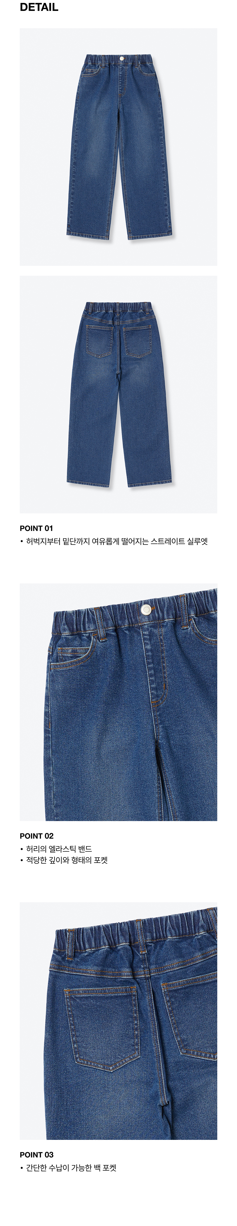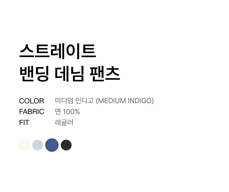 스트레이트 밴딩 데님 팬츠 [미디엄 인디고]