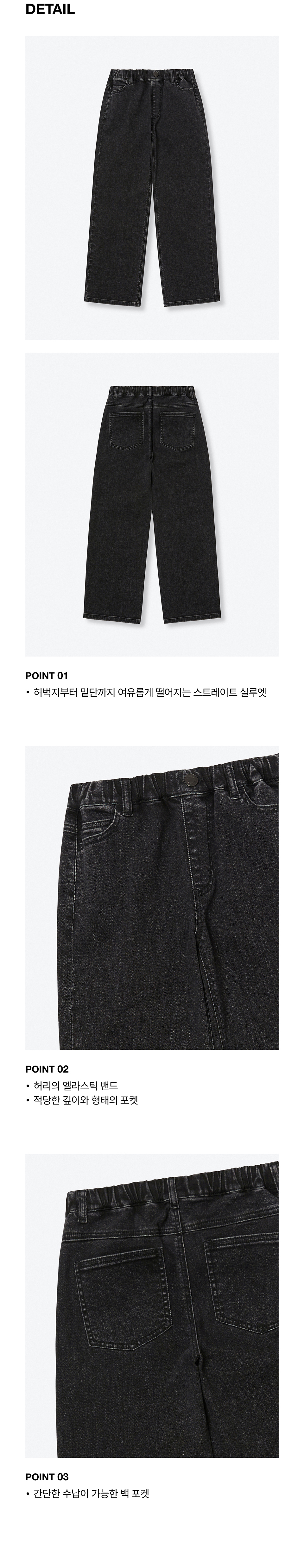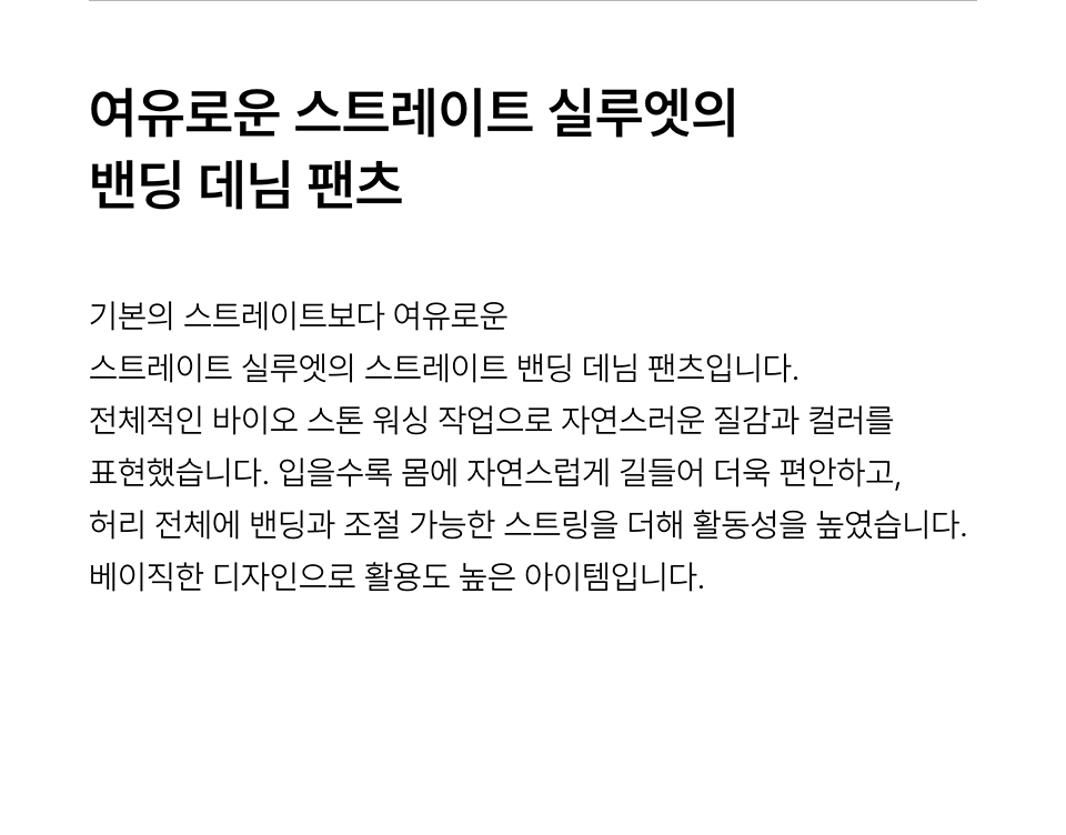 스트레이트 밴딩 데님 팬츠 [워시드 블랙]