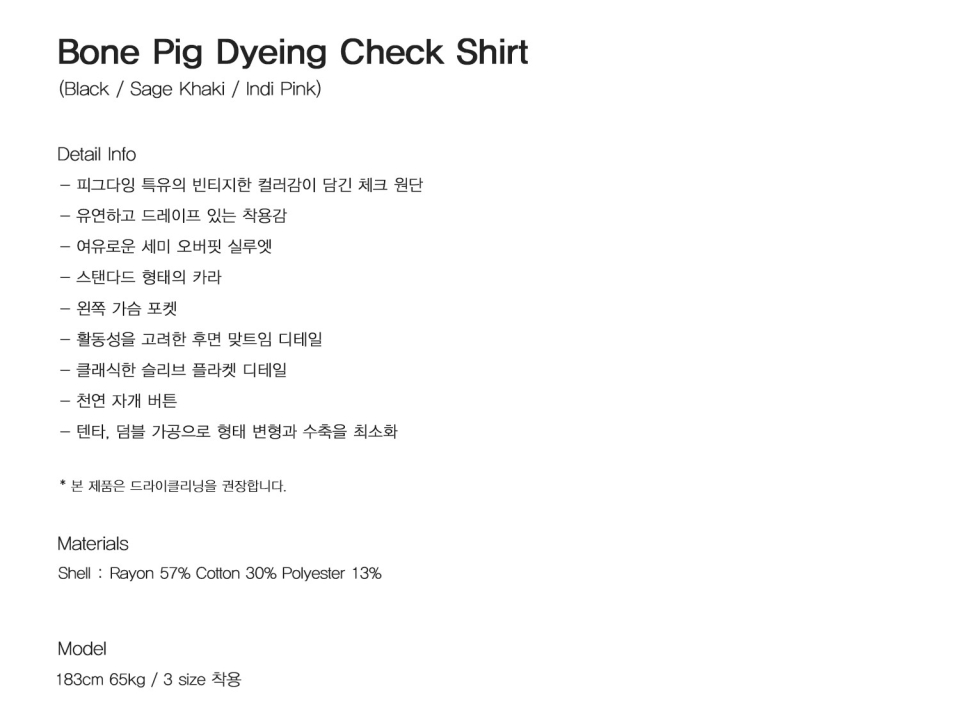 본 피그다잉 체크 셔츠 (세이지 카키)