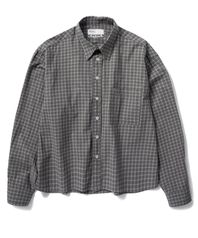 UNISEX 크롭 체크 긴팔 셔츠 - 차콜