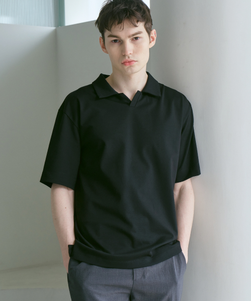 쿨피마 카라 슬릿넥 반팔 차려입은티 [매트 블랙]_ZF2TS112