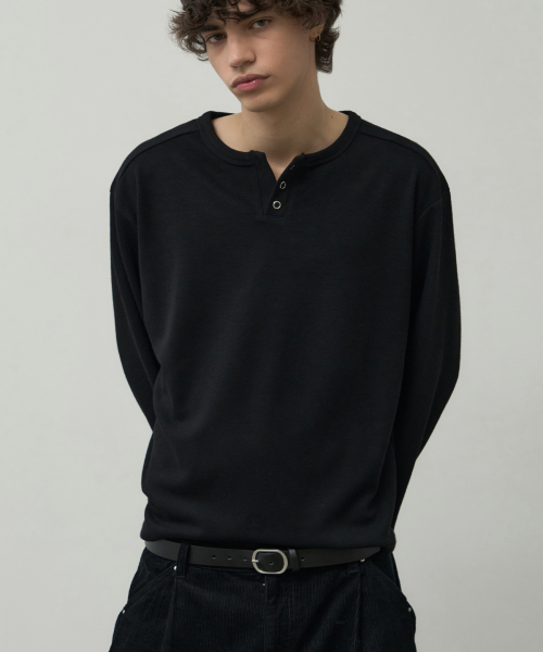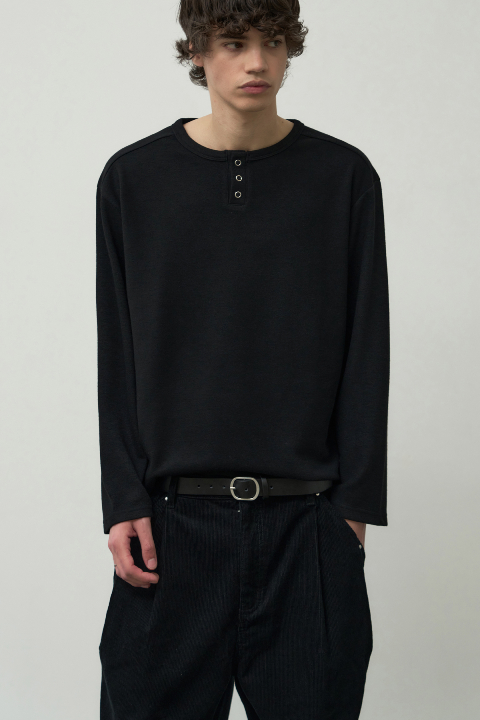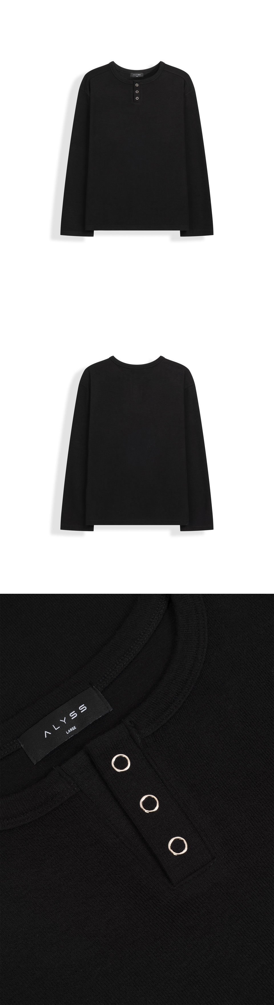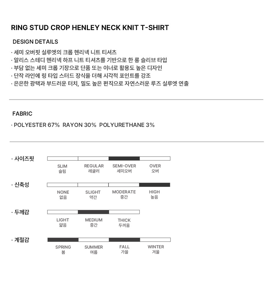 링 스터드 크롭 헨리넥 티셔츠 [블랙]