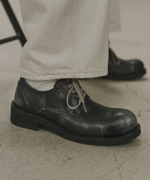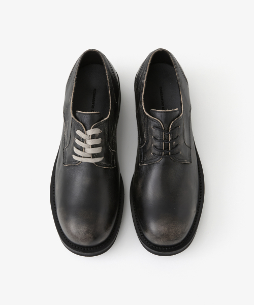 시간이 지나면서 은은하게 올라오는 가죽 본연의 색과 단면부 컷오프 디테일이 매력적인 슈즈입니다.