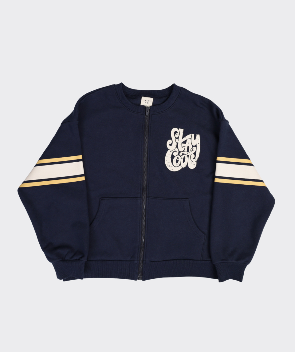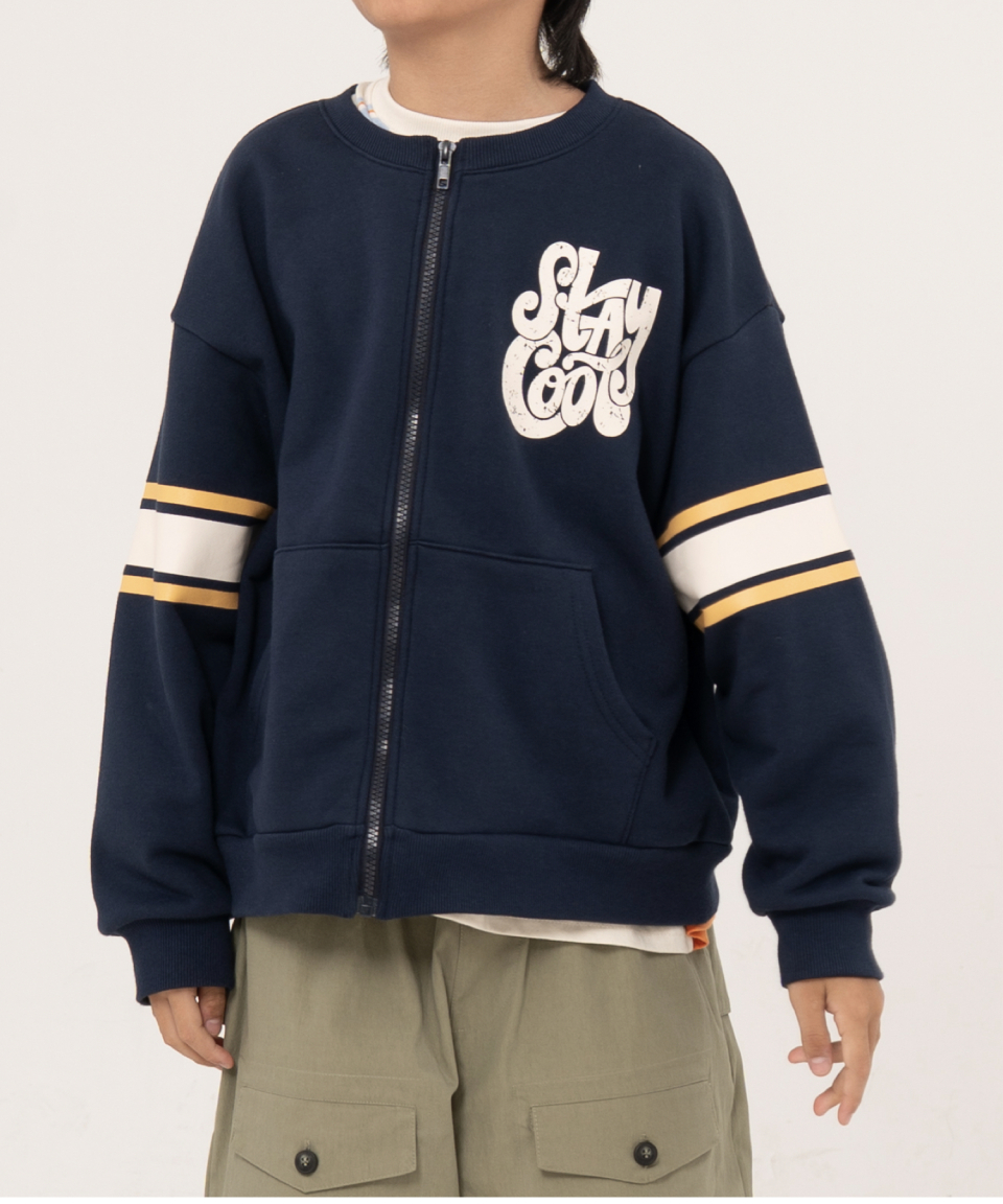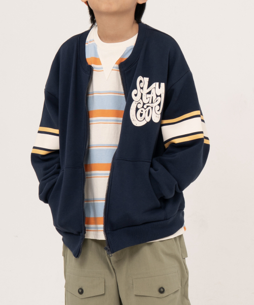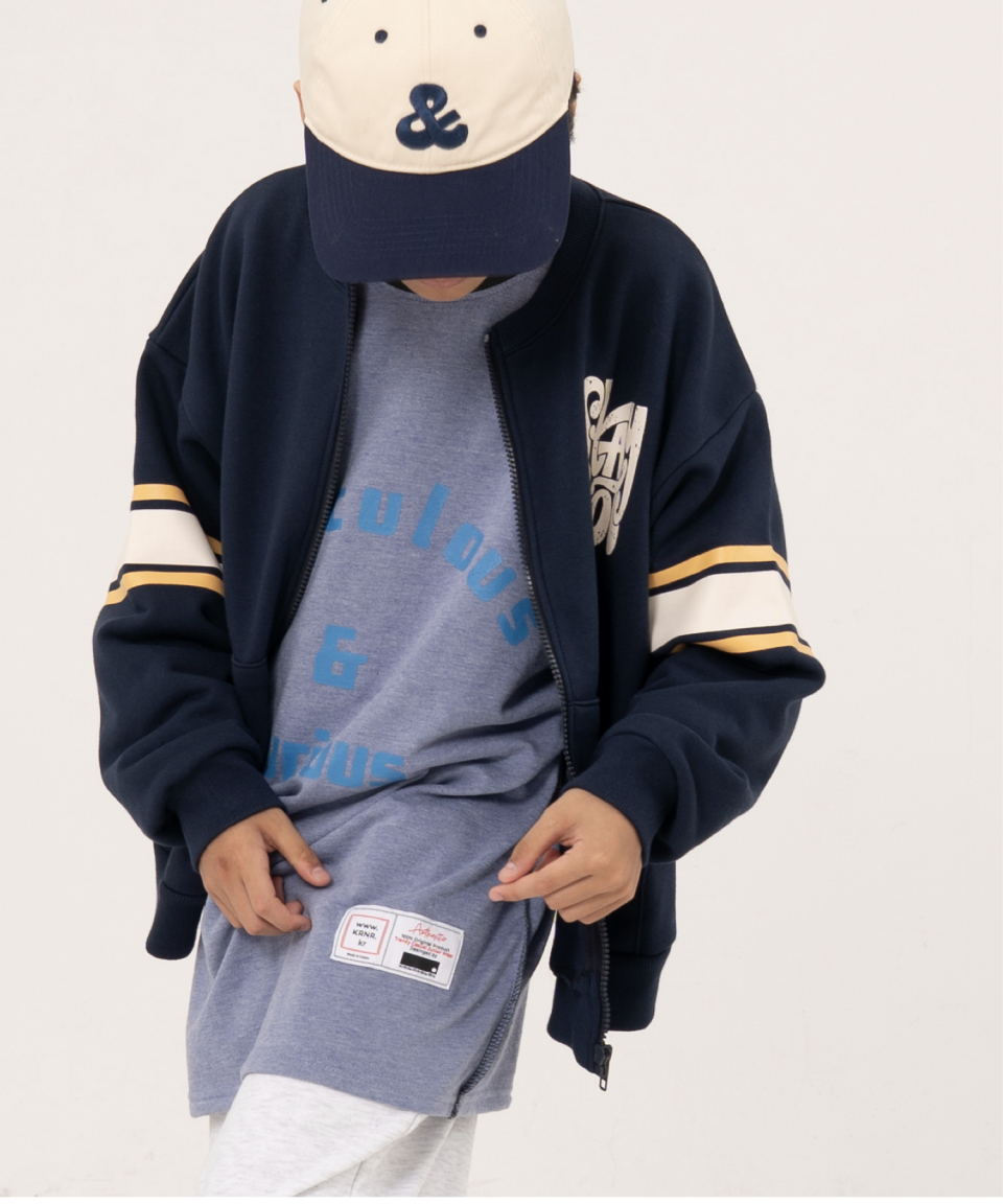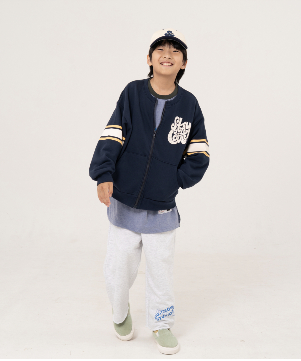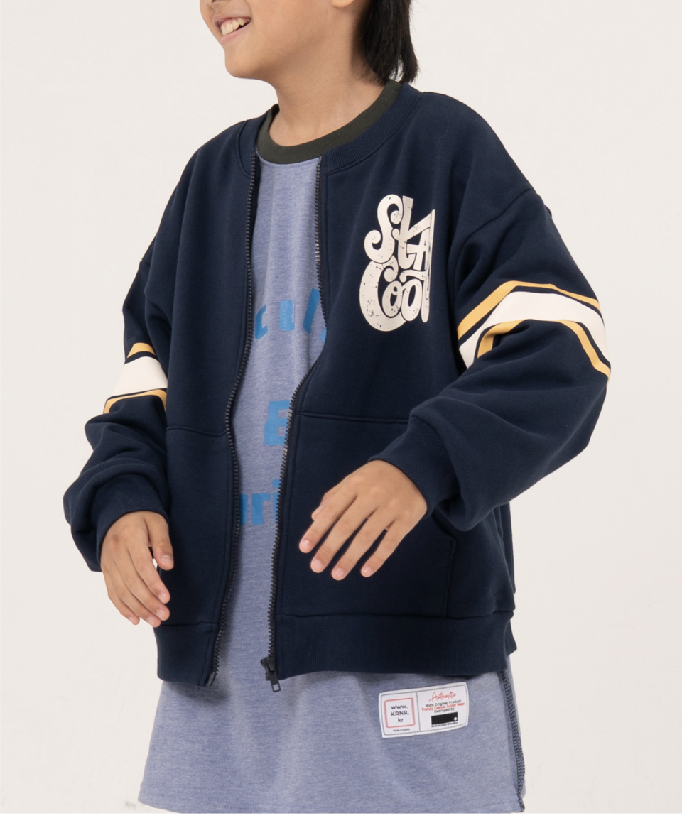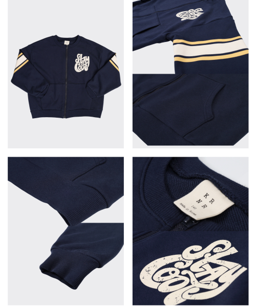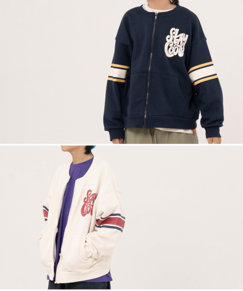 스테이쿨 레귤러핏 풀 집업 맨투맨 점퍼 네이비, 아이보리