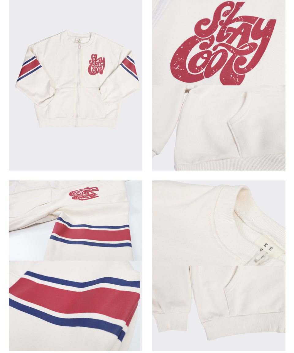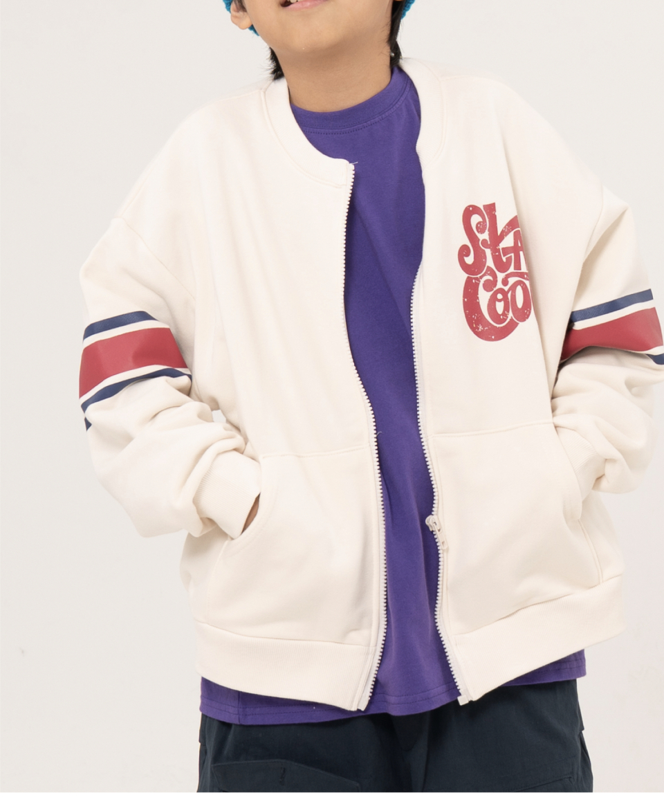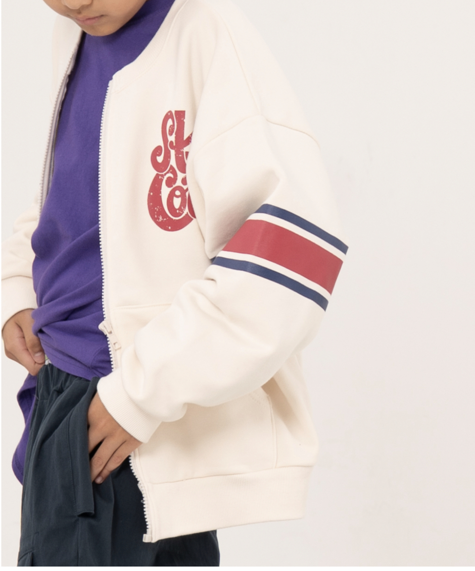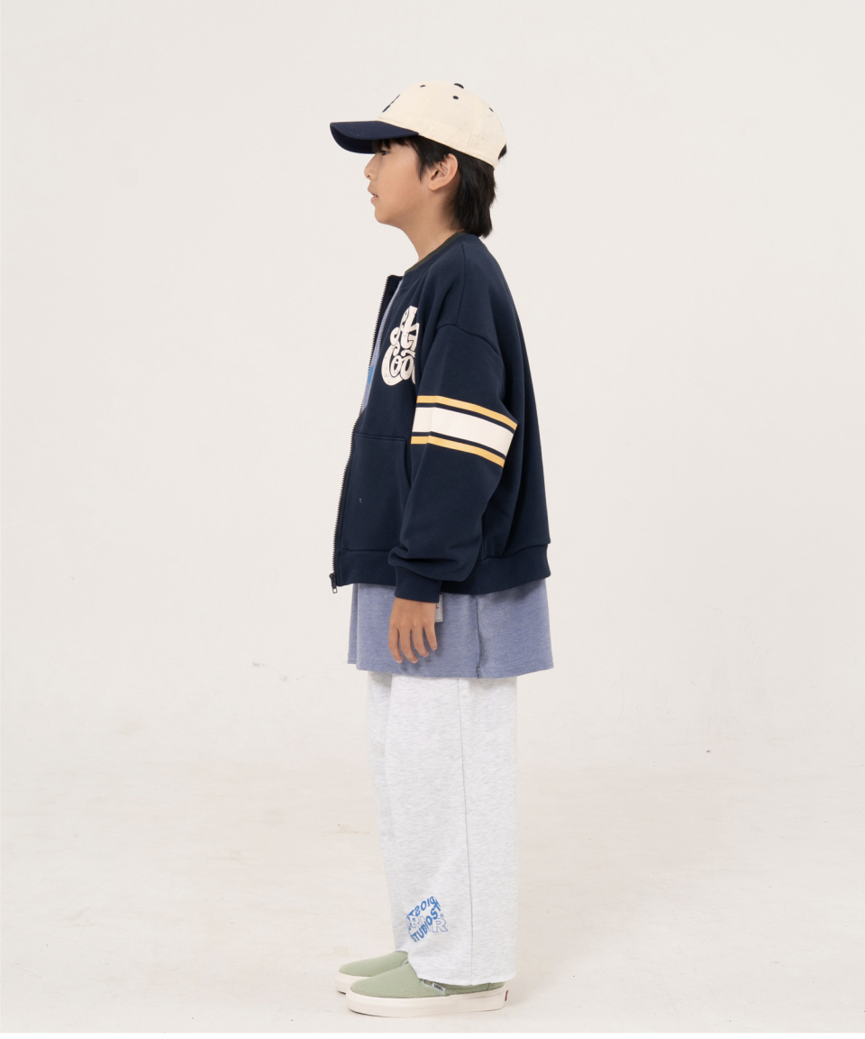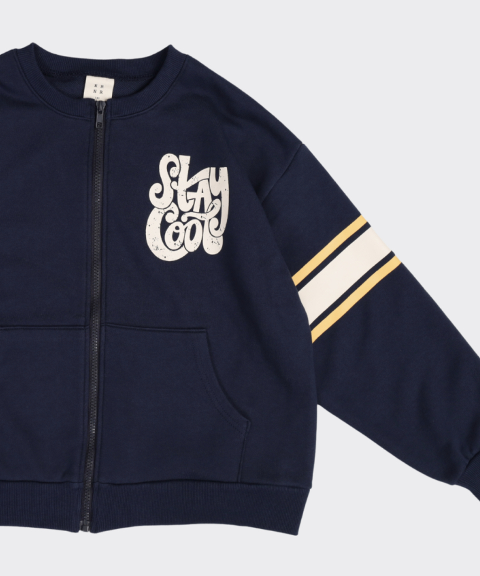 스테이쿨 레귤러핏 풀 집업 맨투맨 점퍼 네이비, 아이보리
