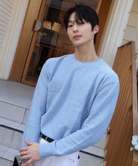 레스티드 세미 오버핏 라운드넥 니트 [브라운]