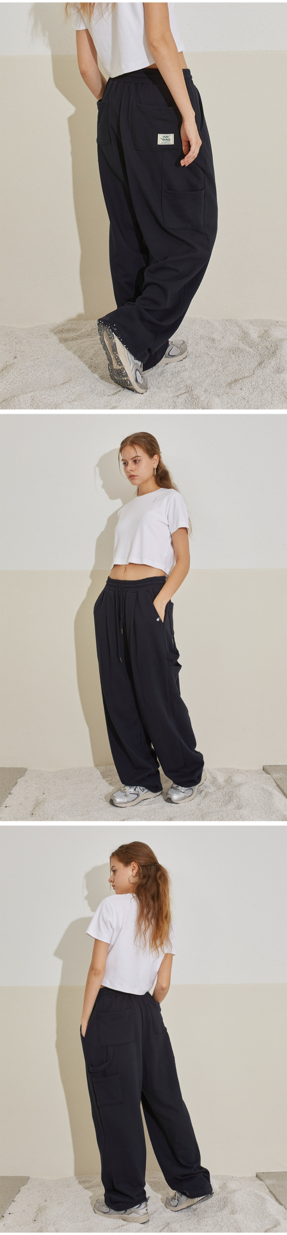 커브드 사이드 핀턱 벌룬 스웨트팬츠 GLP-650_블랙