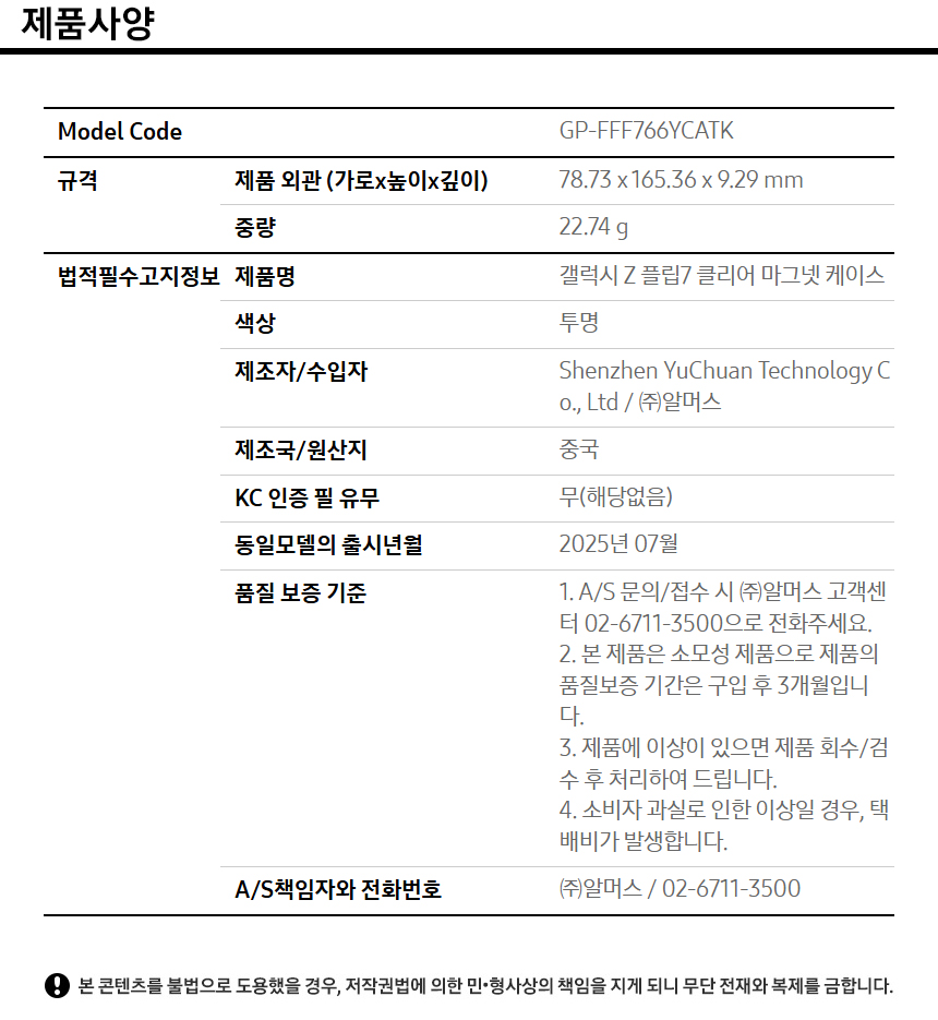 삼성 갤럭시 Z 플립7 클리어 마그넷 케이스