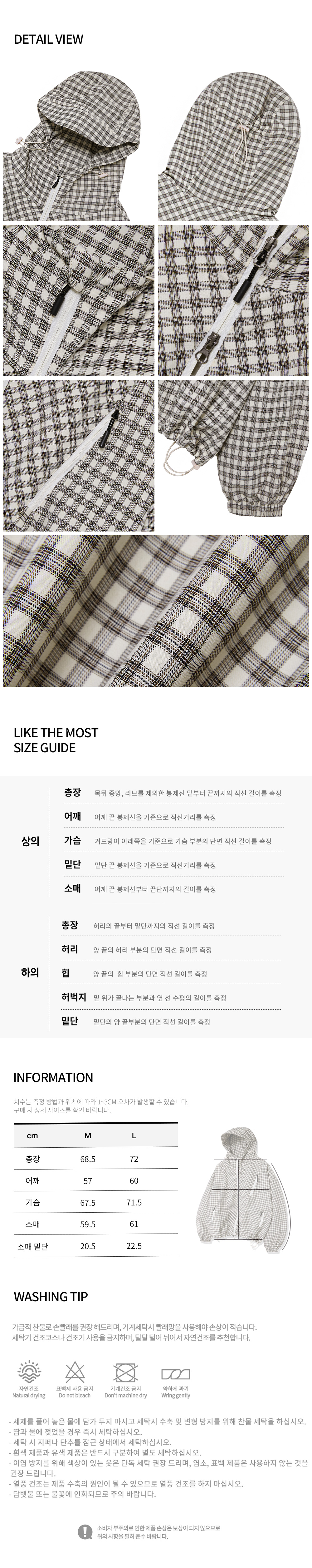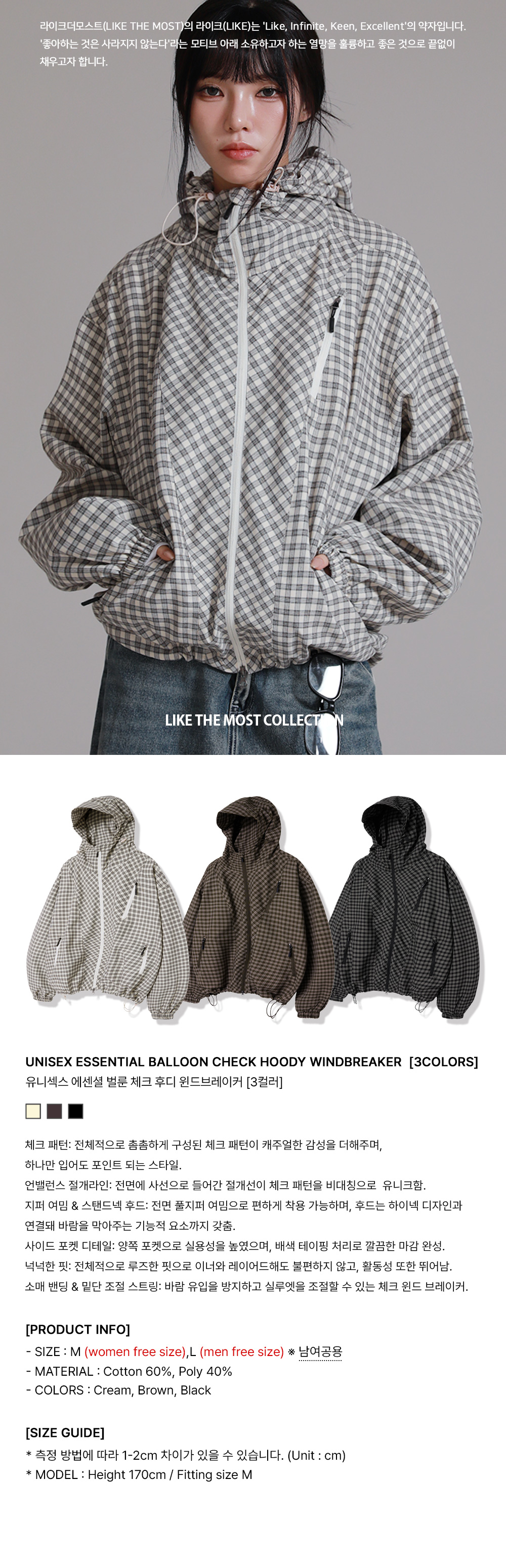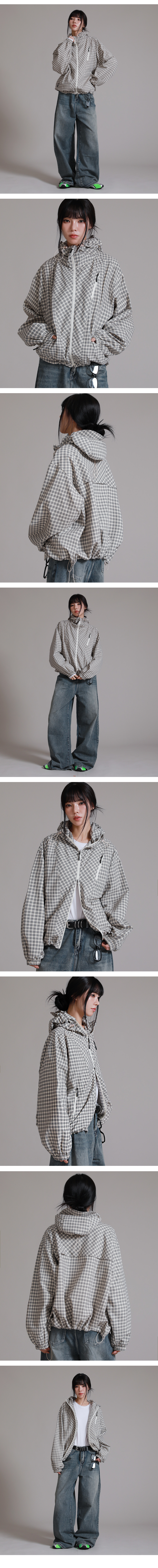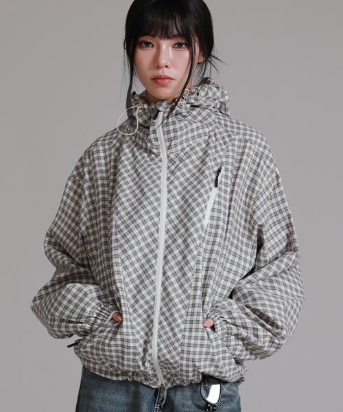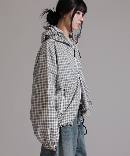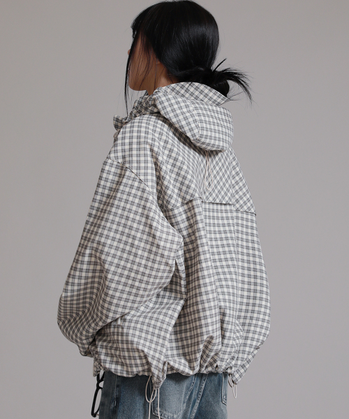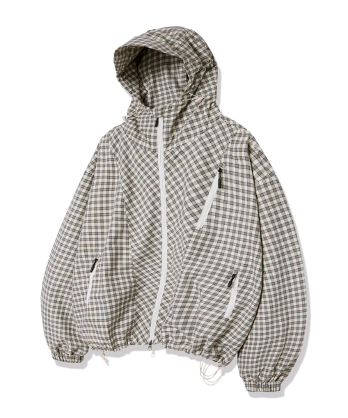 유니섹스 에센셜 벌룬 체크 후디 윈드브레이커_크림