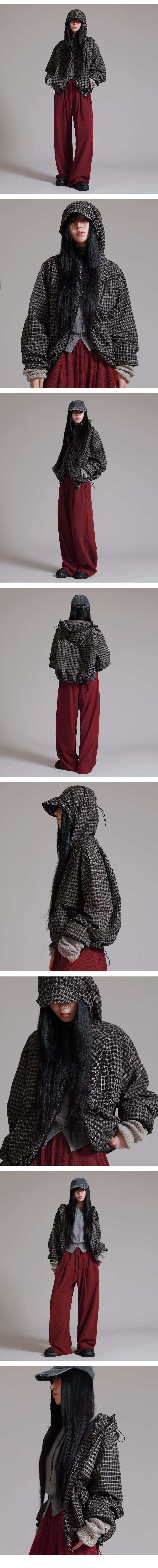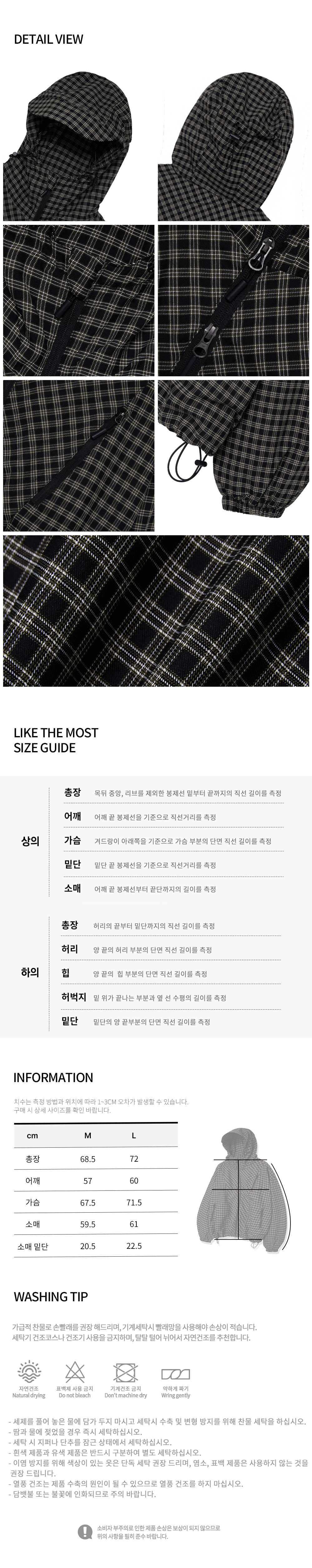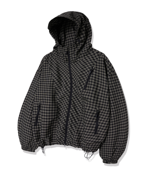 유니섹스 에센셜 벌룬 체크 후디 윈드브레이커_블랙