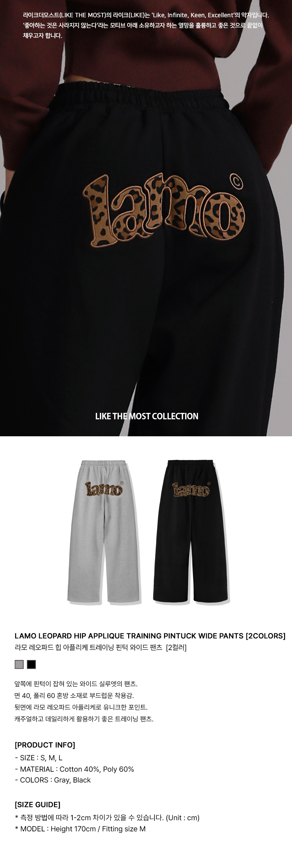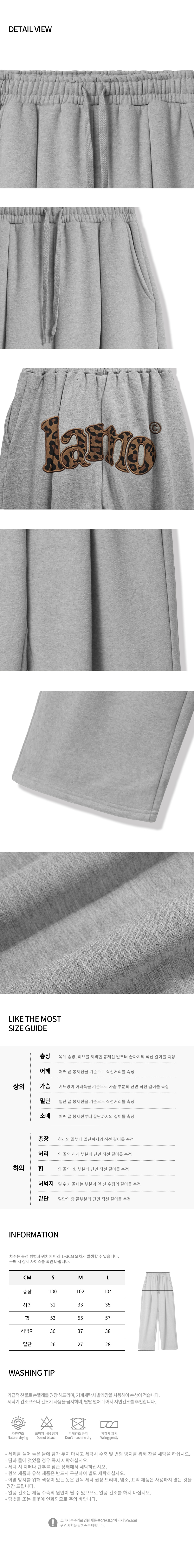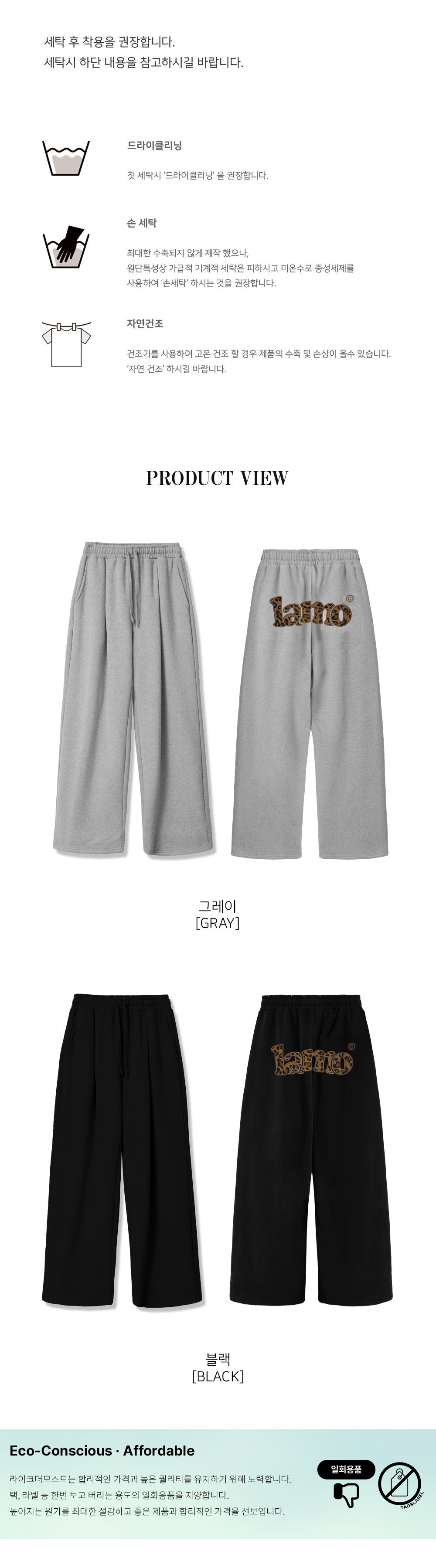 라모 레오파드 힙 아플리케 트레이닝 핀턱 와이드 팬츠_그레이