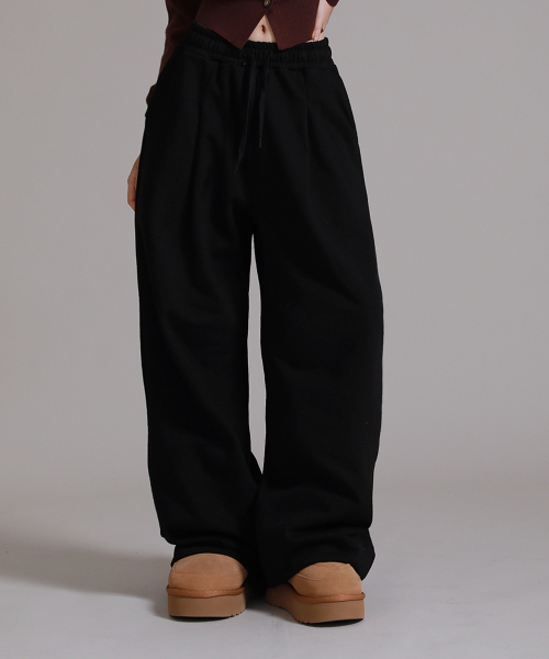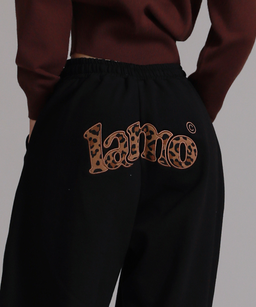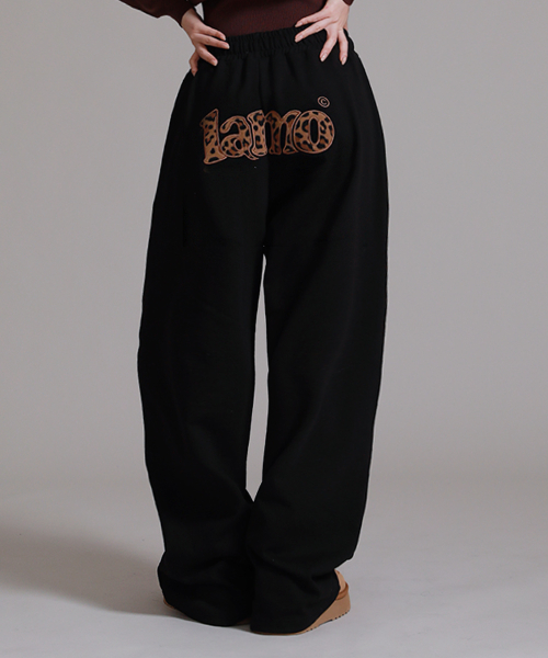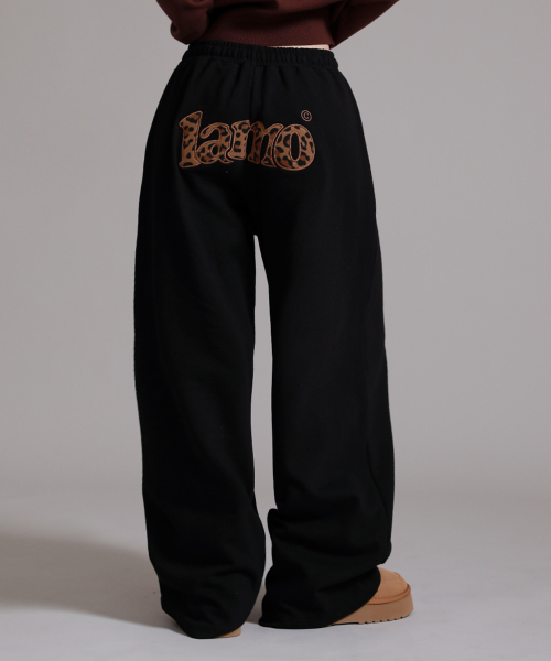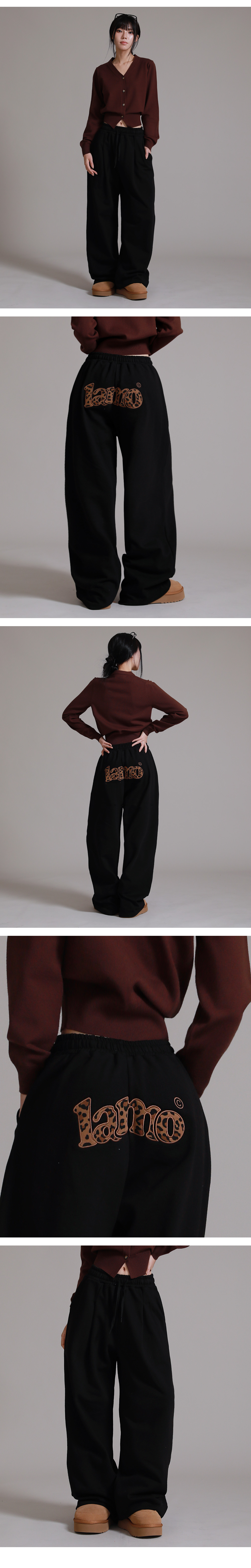 라모 레오파드 힙 아플리케 트레이닝 핀턱 와이드 팬츠_블랙