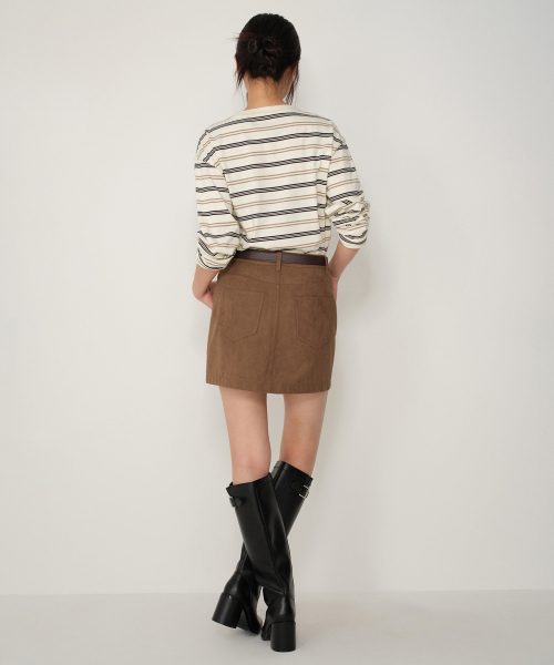 우먼즈 신세틱 스웨이드 미니 스커트 [라이트 브라운]