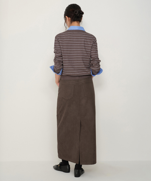 우먼즈 신세틱 스웨이드 맥시 스커트 [브라운]