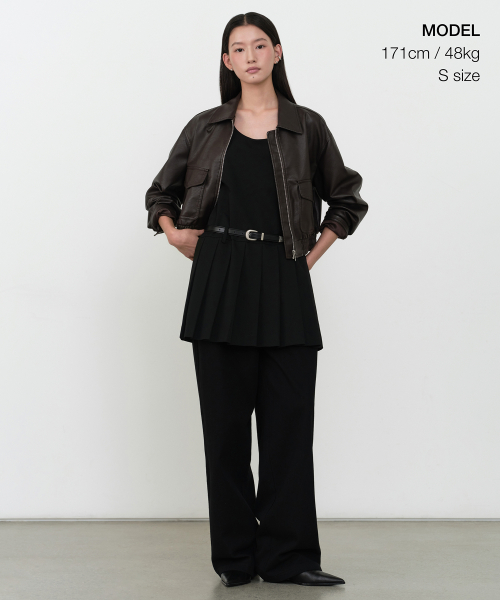 우먼즈 슬림 플리츠 미니 드레스 [블랙]