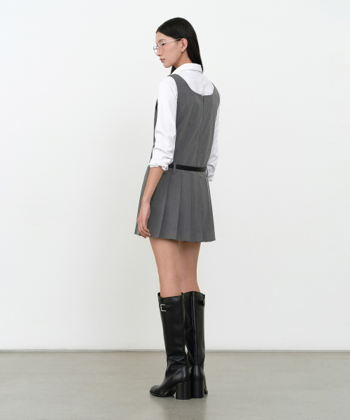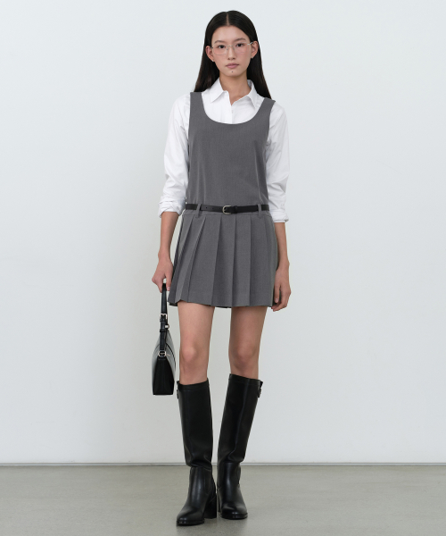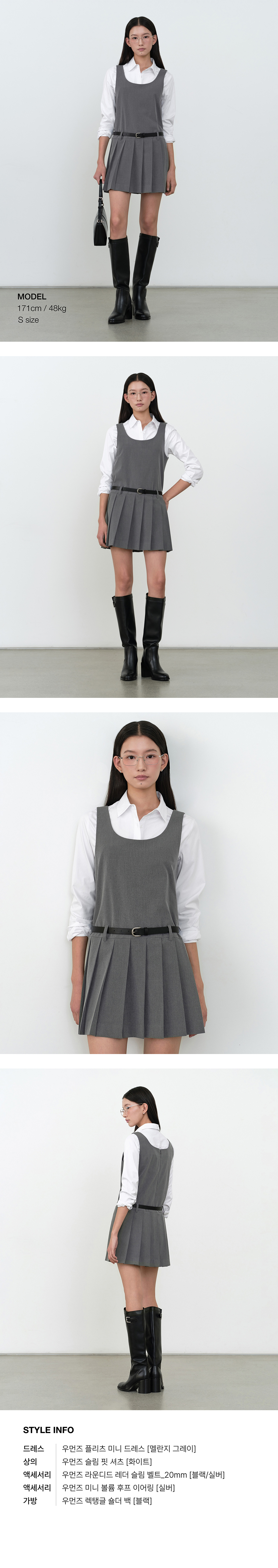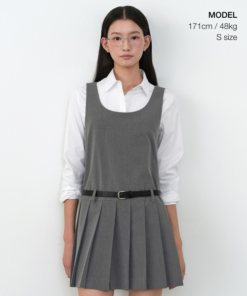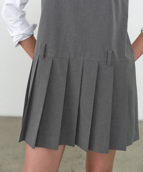우먼즈 플리츠 미니 드레스 [멜란지 그레이]
