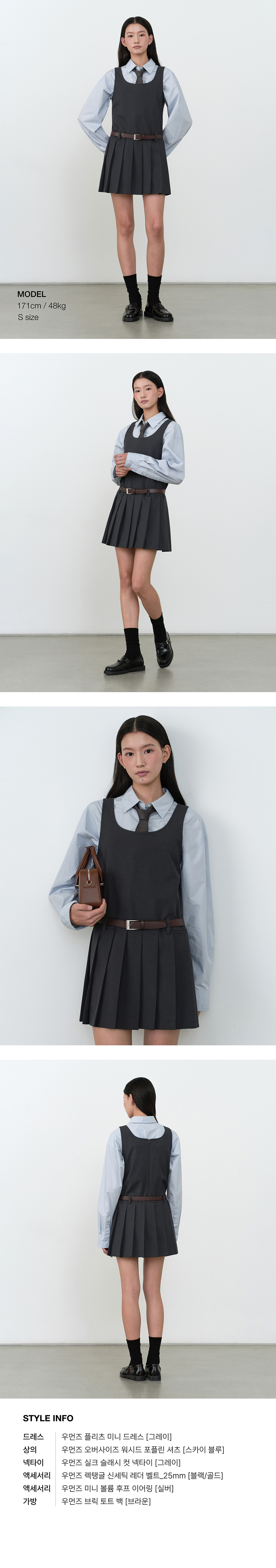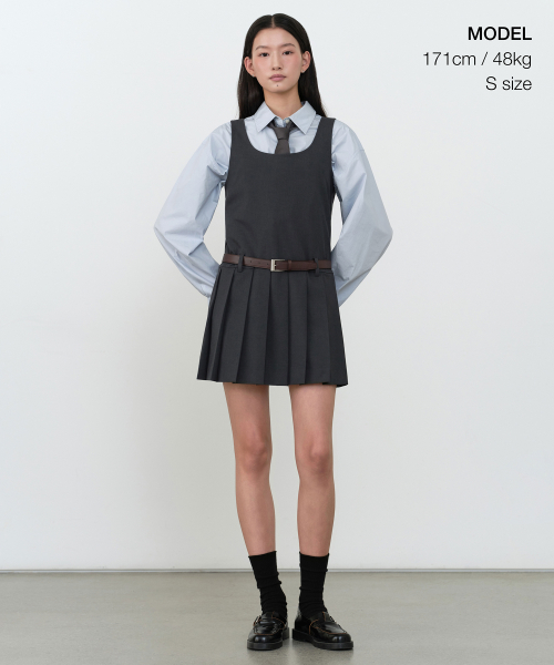 우먼즈 플리츠 미니 드레스 [그레이]