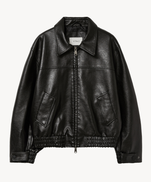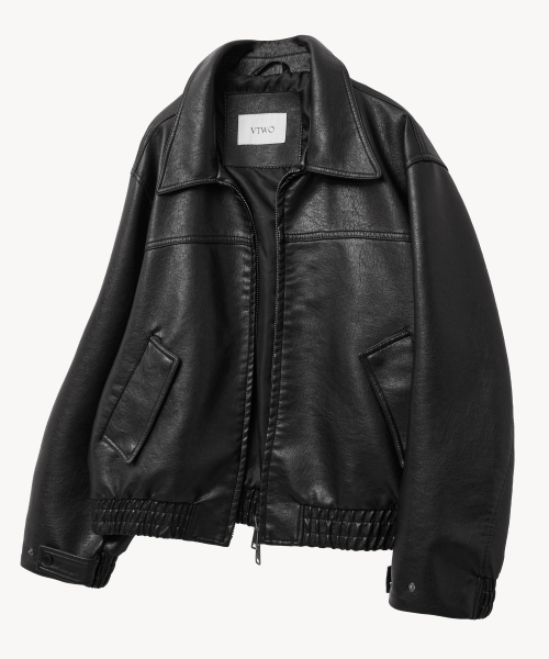 • 자연스럽게 떨어지는 드롭 숄더로 여유로운 오버핏 실루엣의 싱글 레더 자켓