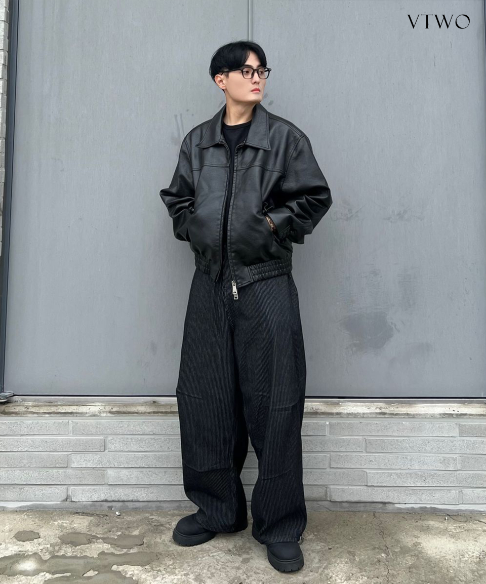 8267 워시드 레더 블루종 점퍼 (BLACK)