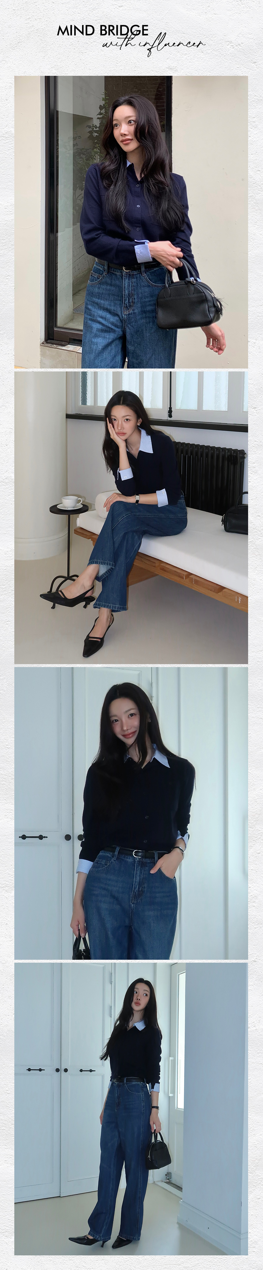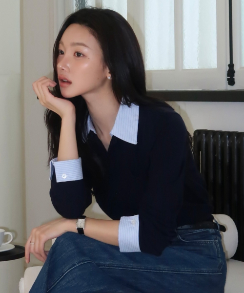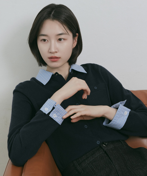 [W]셔츠 믹스 풀오픈 니트 - 3color