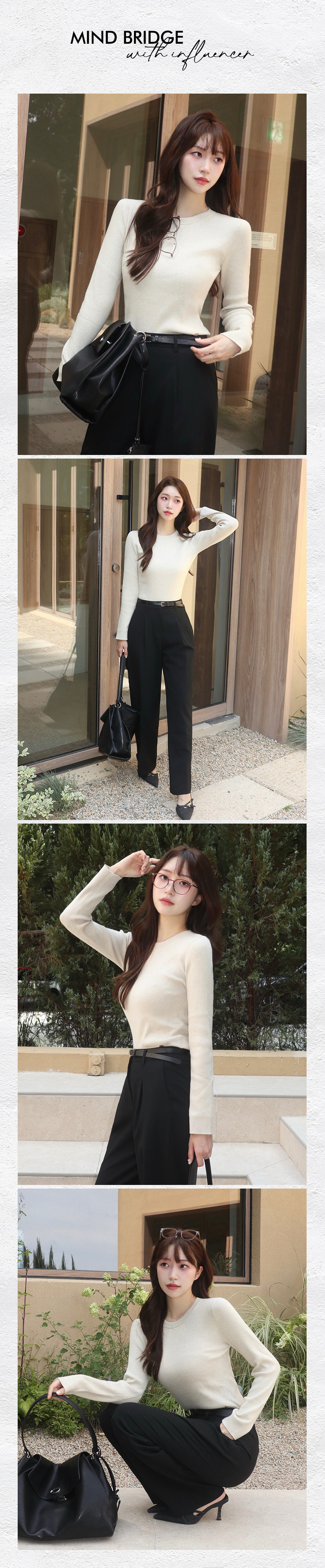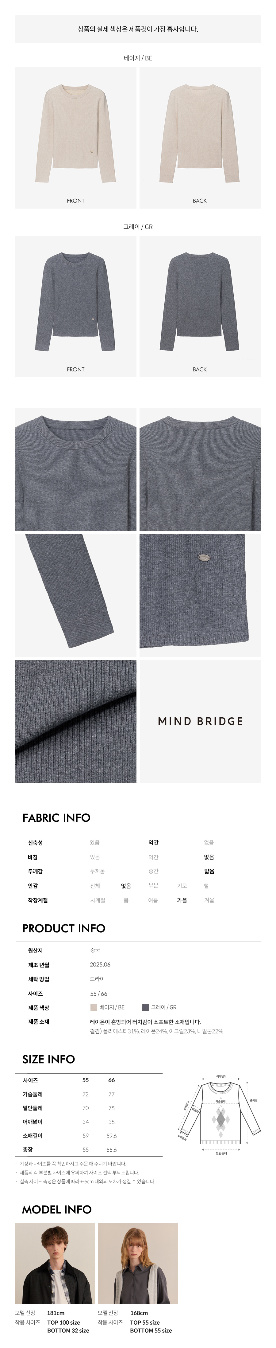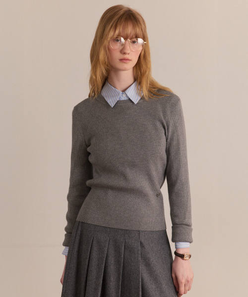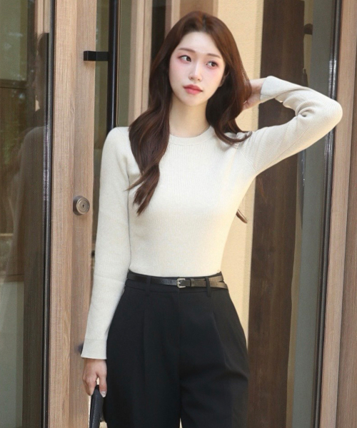 [W]라운드넥 슬림핏 골지 니트 - 2color