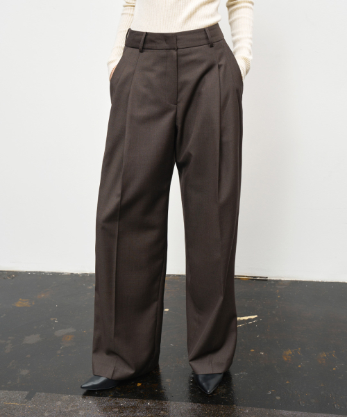 자연스럽게 흐르는 원단감으로 와이드한 핏감이 특징인 슬랙스입니다.