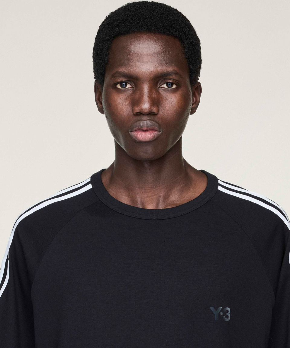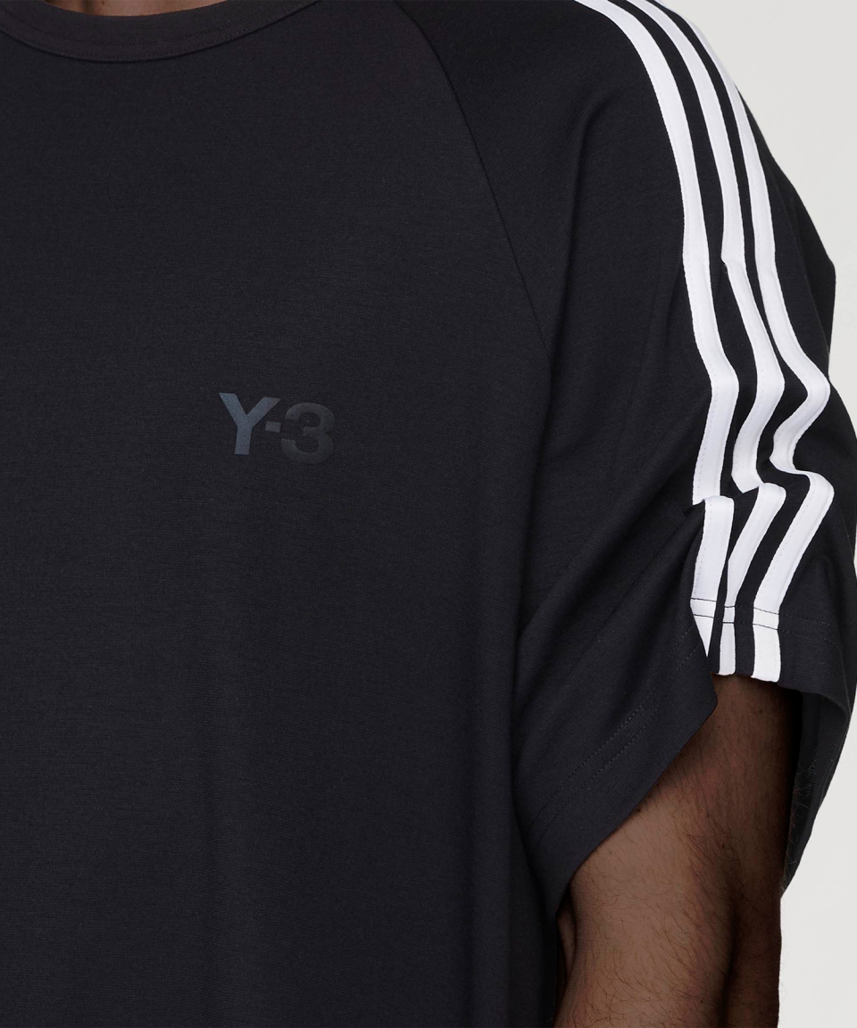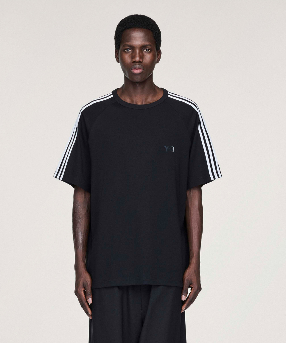 Y-3 3 스트라이프 숏 슬리브 티 - 블랙 / JW7352