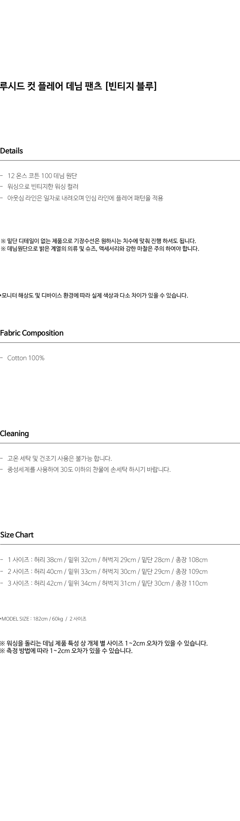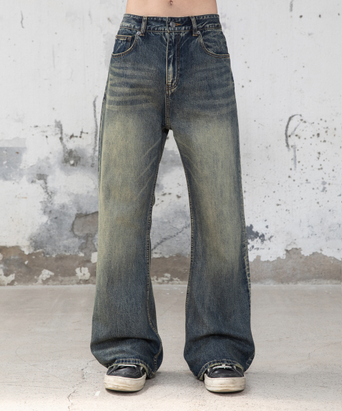 루시드 컷 플레어 데님 팬츠 [빈티지 블루]