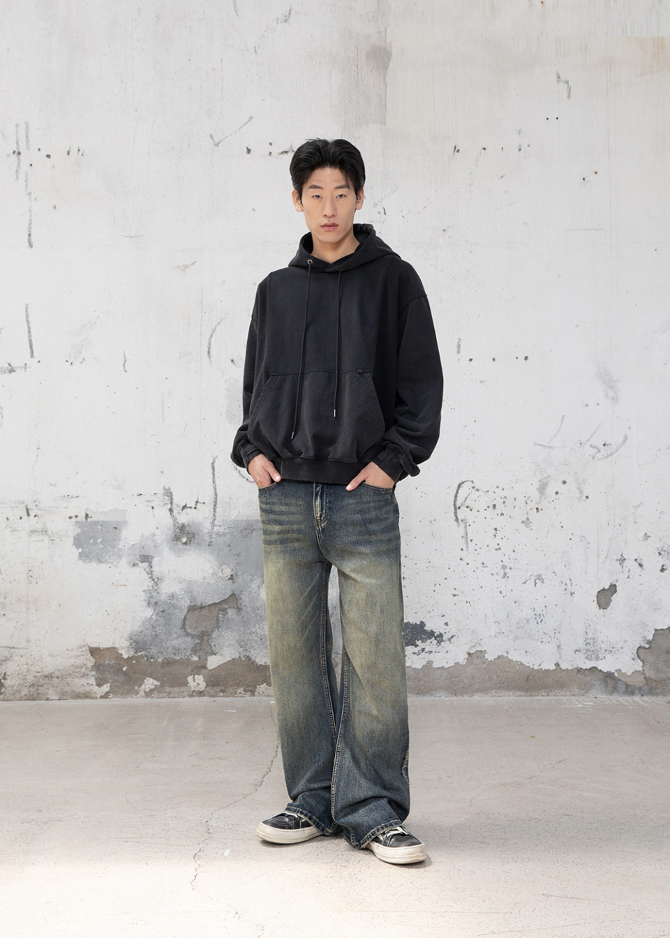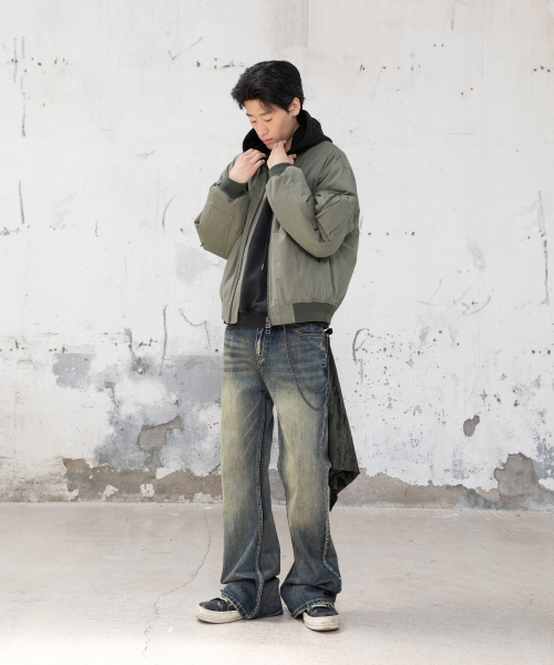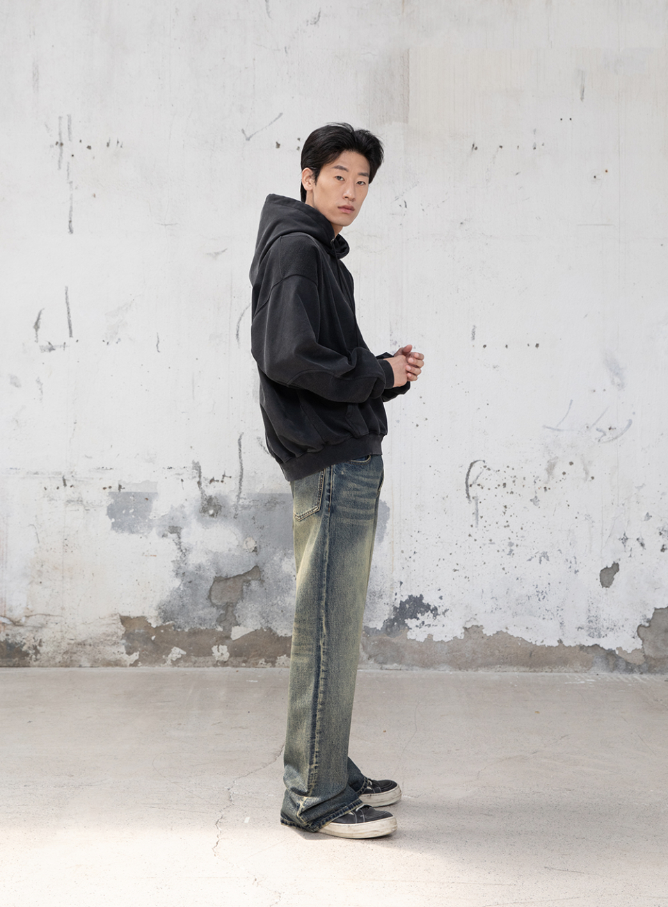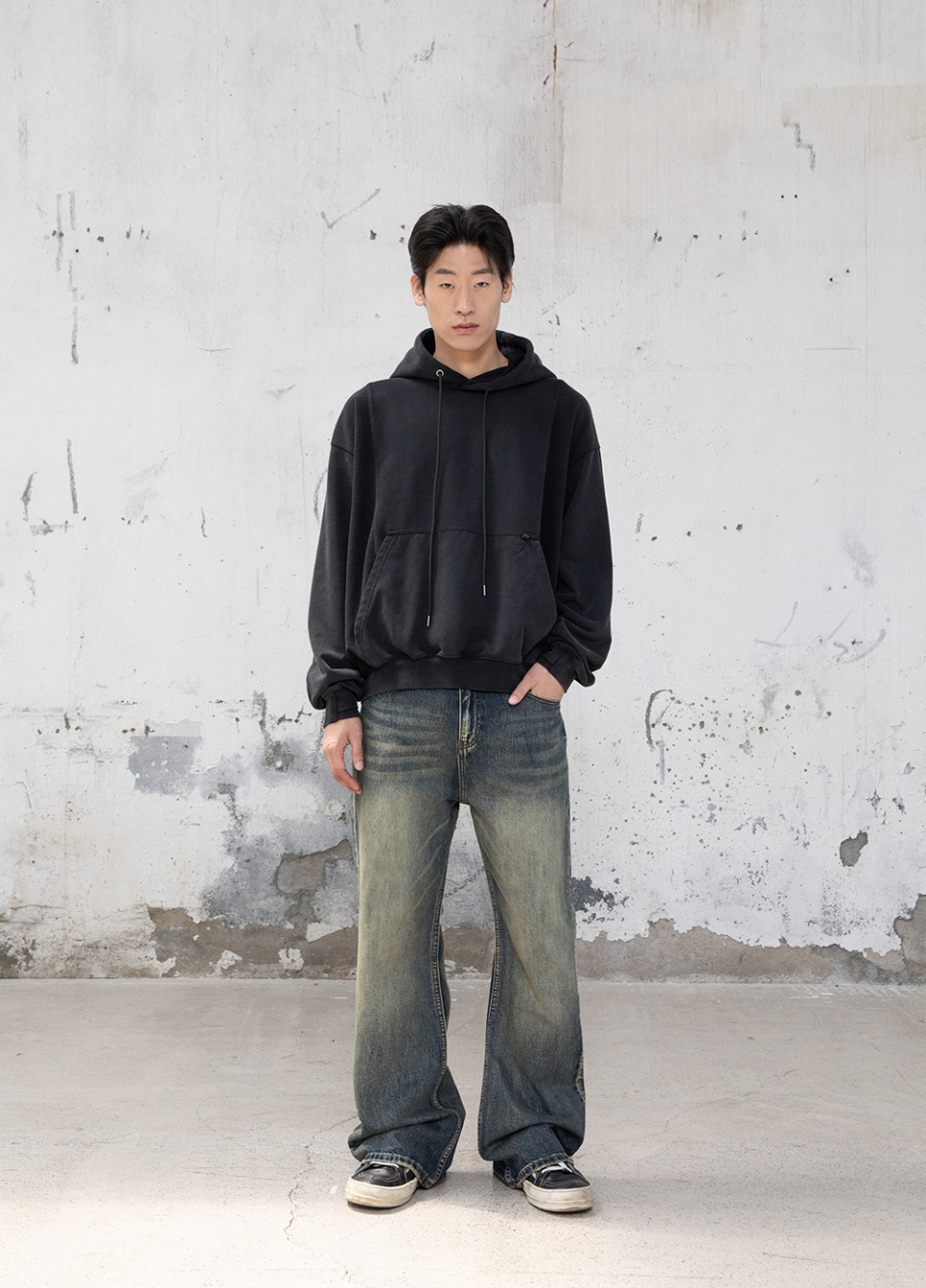 루시드 컷 플레어 데님 팬츠 [워시드 블랙]