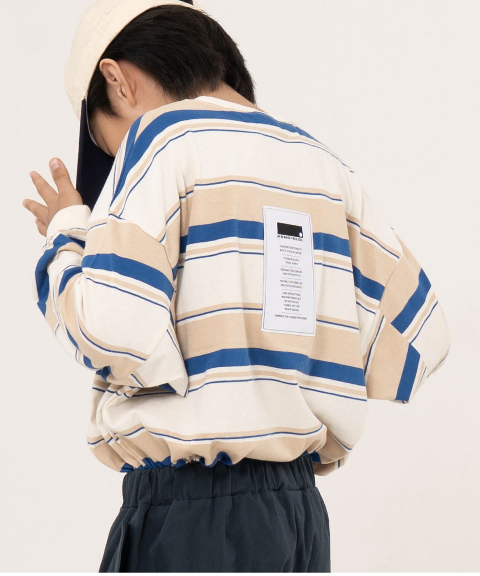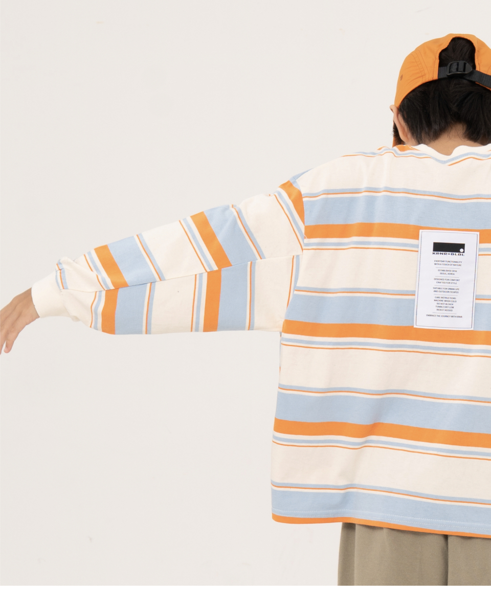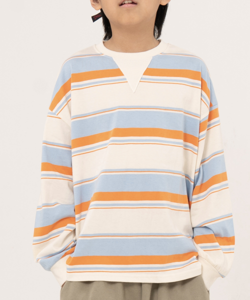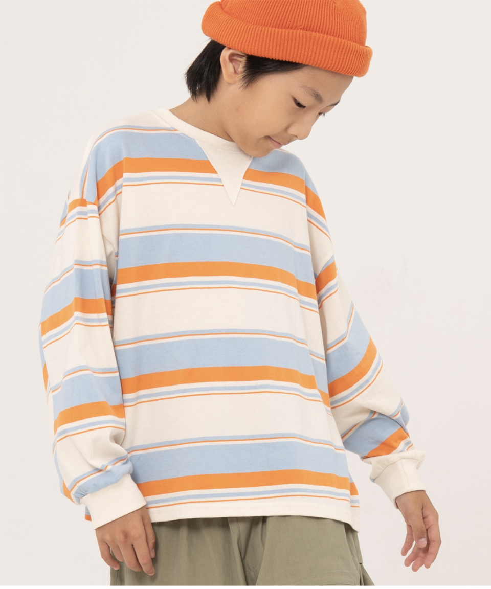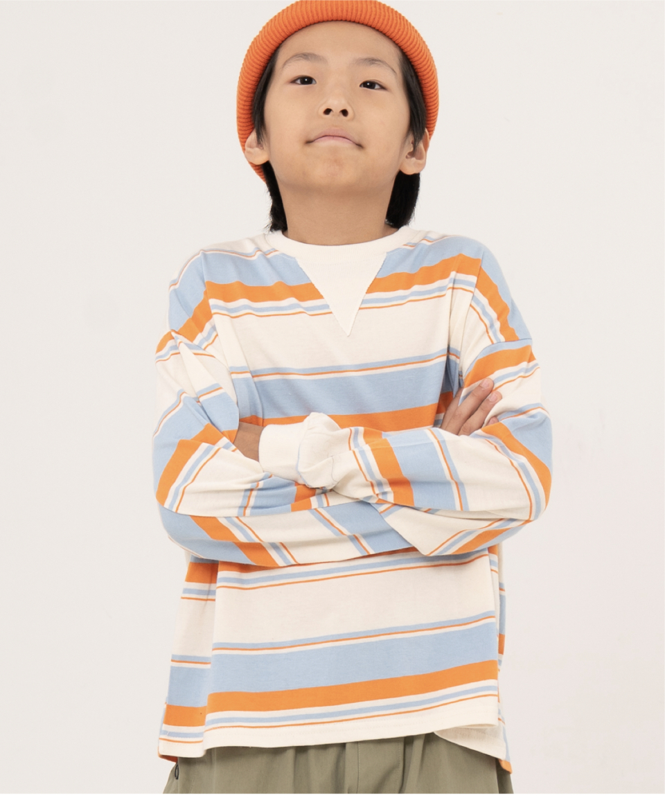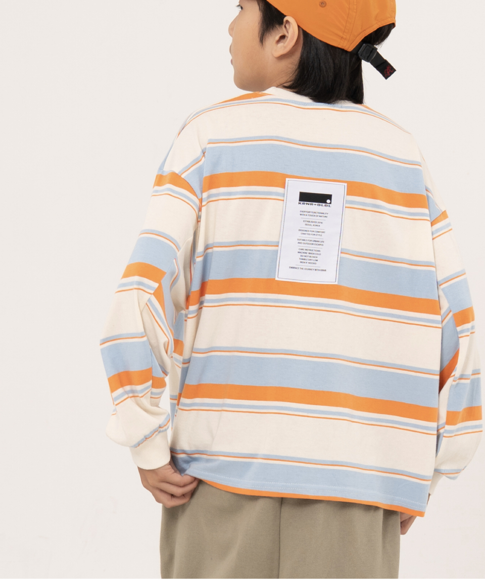 그로우 오버사이즈 스트라이프 주니어긴팔티 블루,오렌지