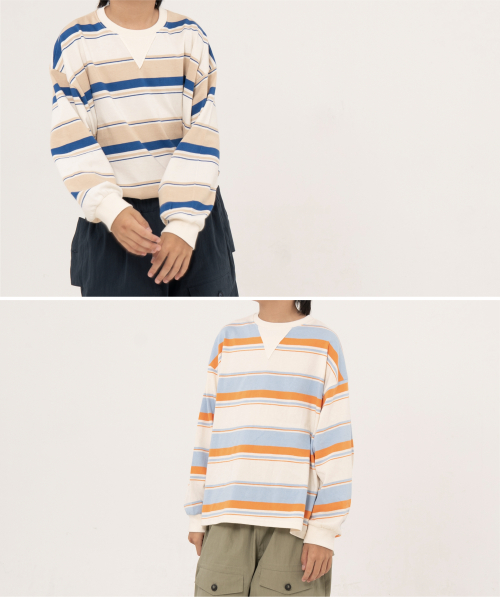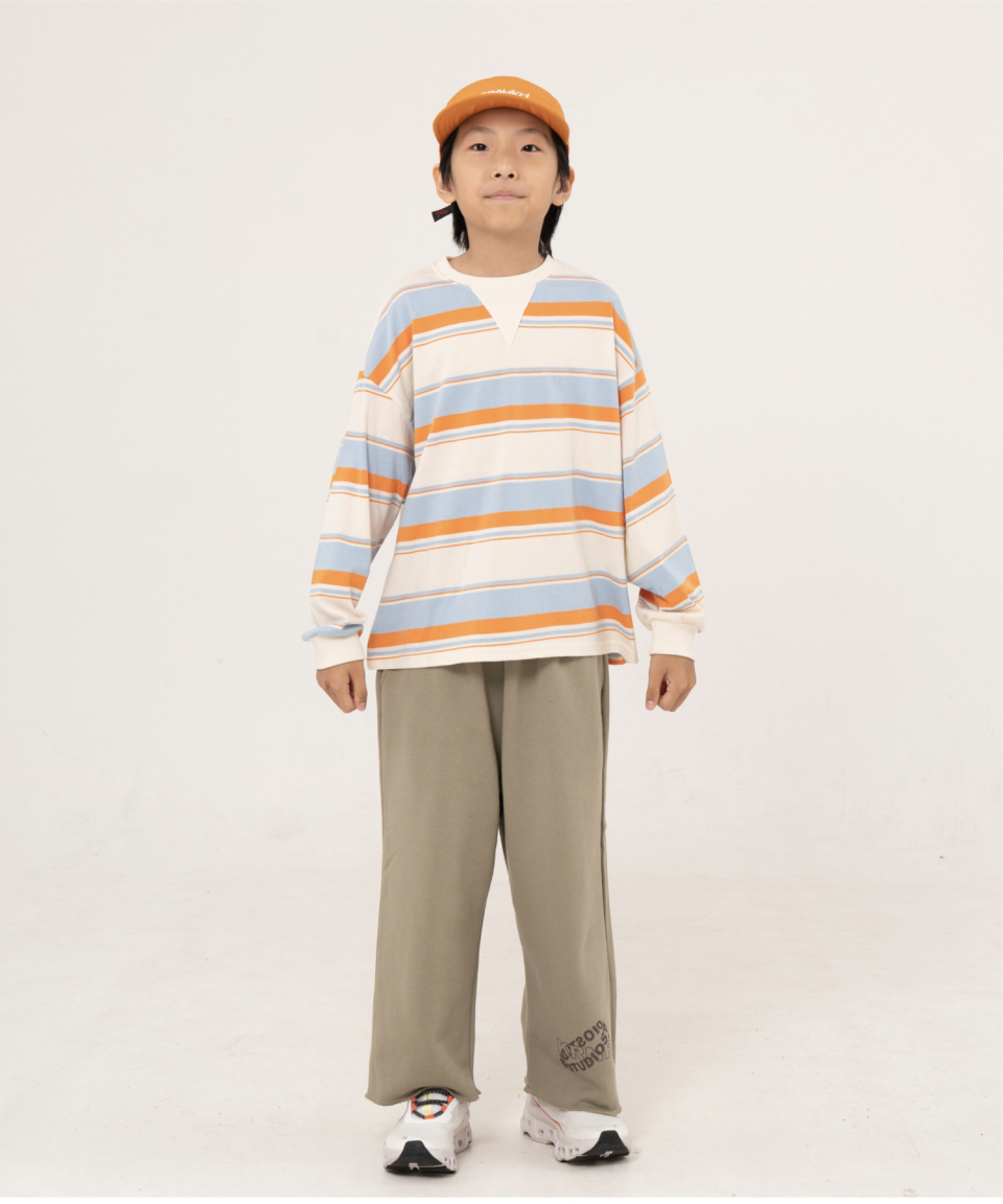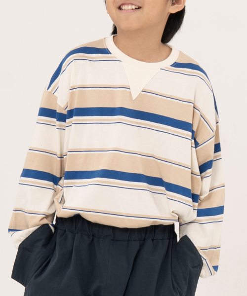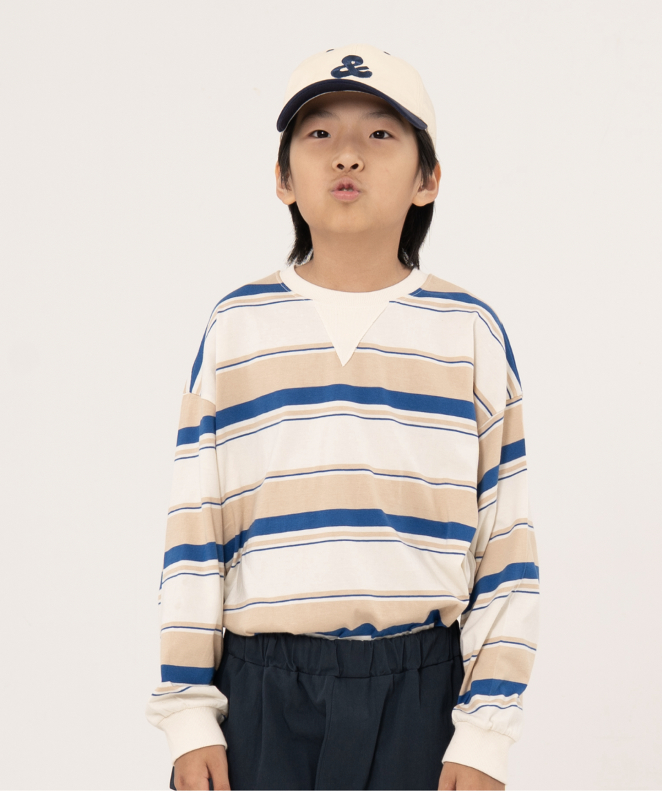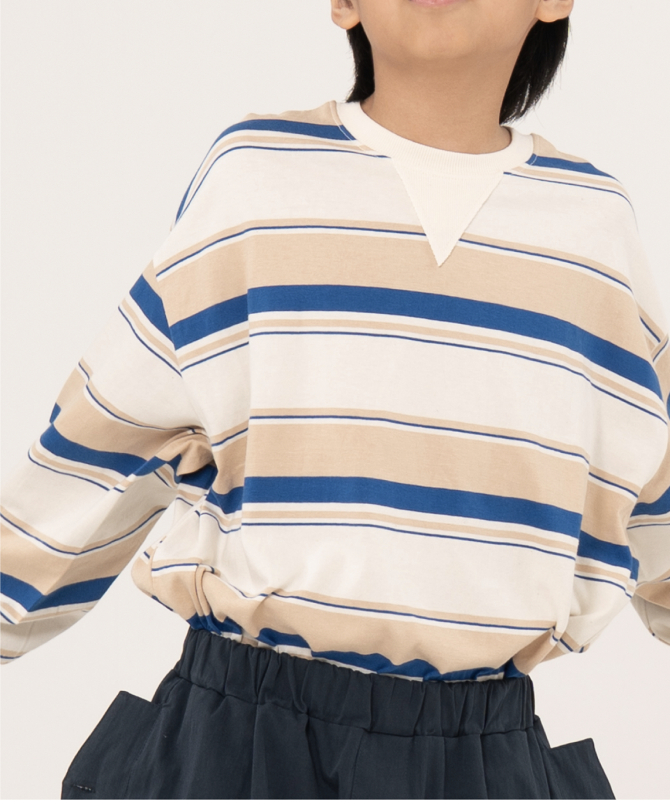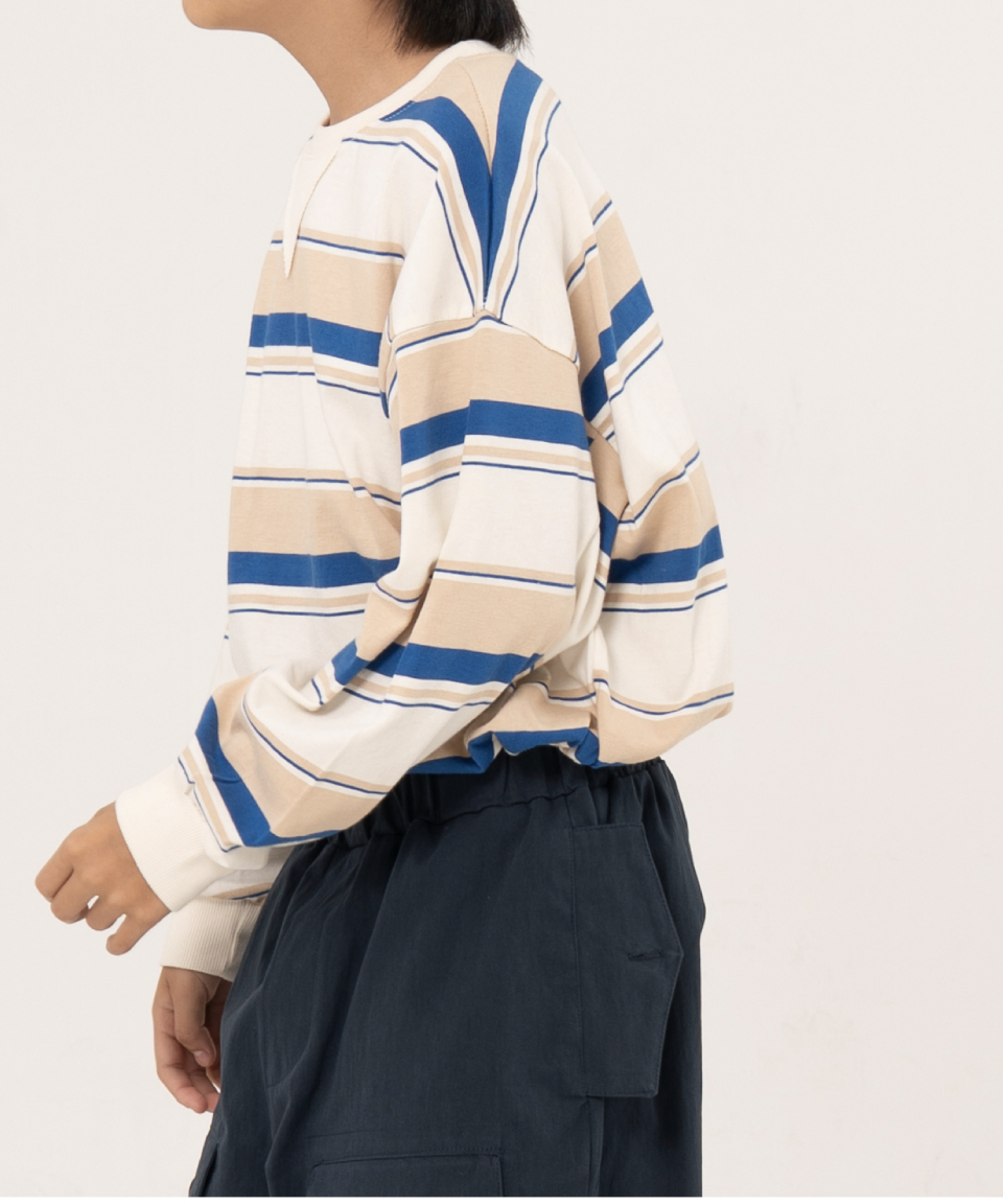 그로우 오버사이즈 스트라이프 주니어긴팔티 블루,오렌지