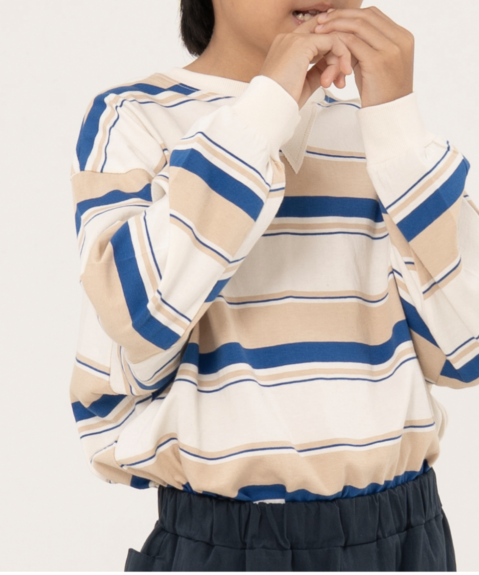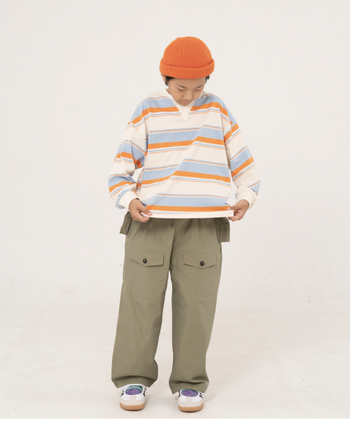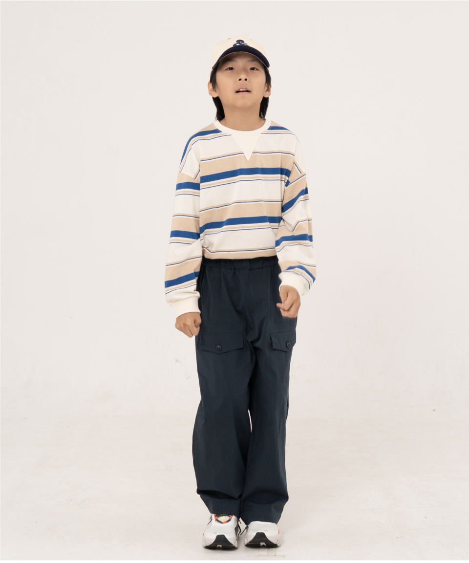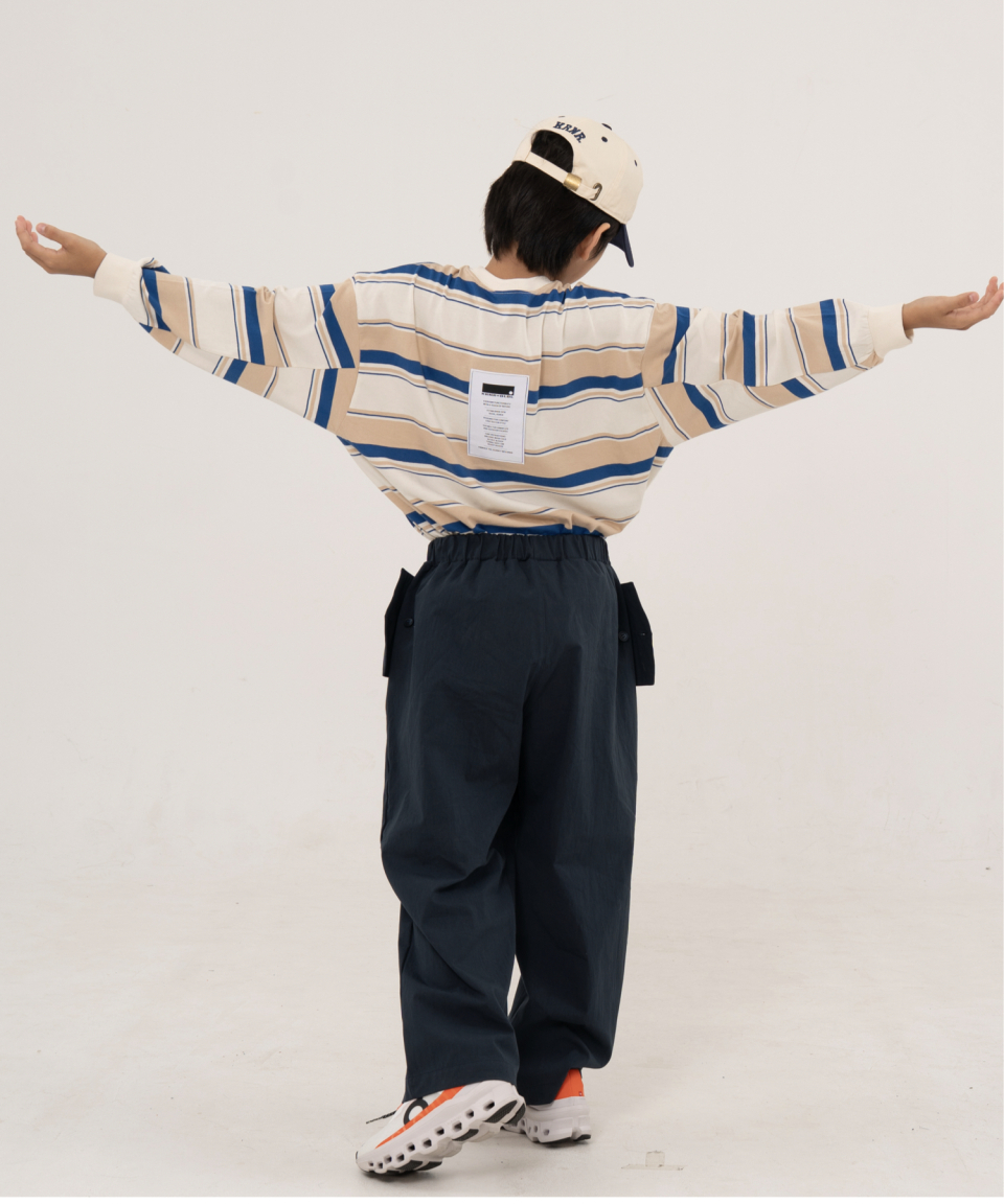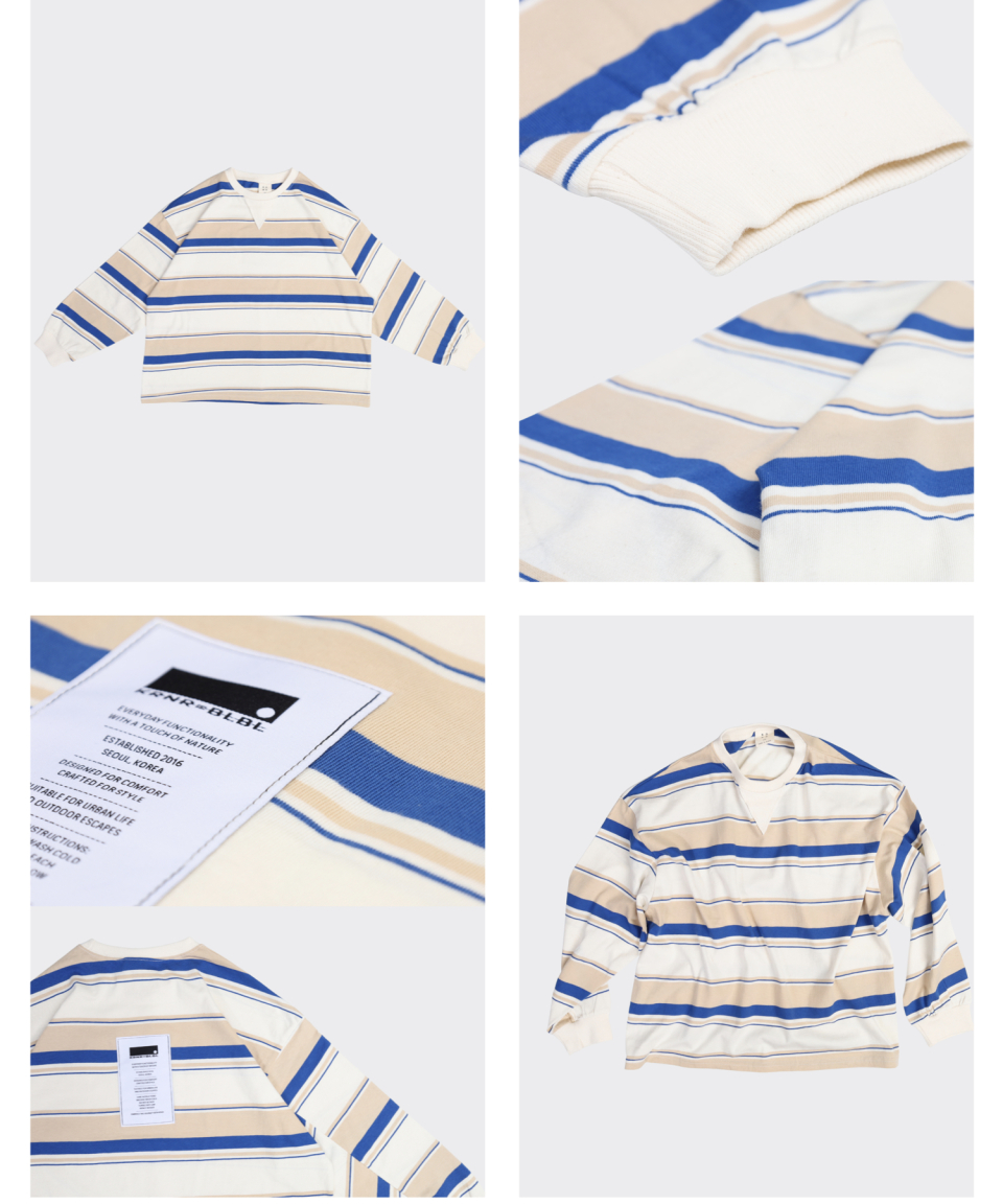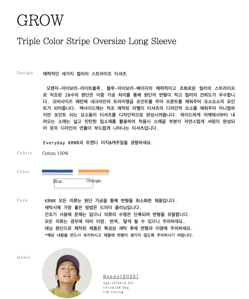 그로우 오버사이즈 스트라이프 주니어긴팔티 블루,오렌지
