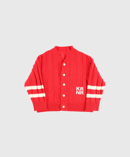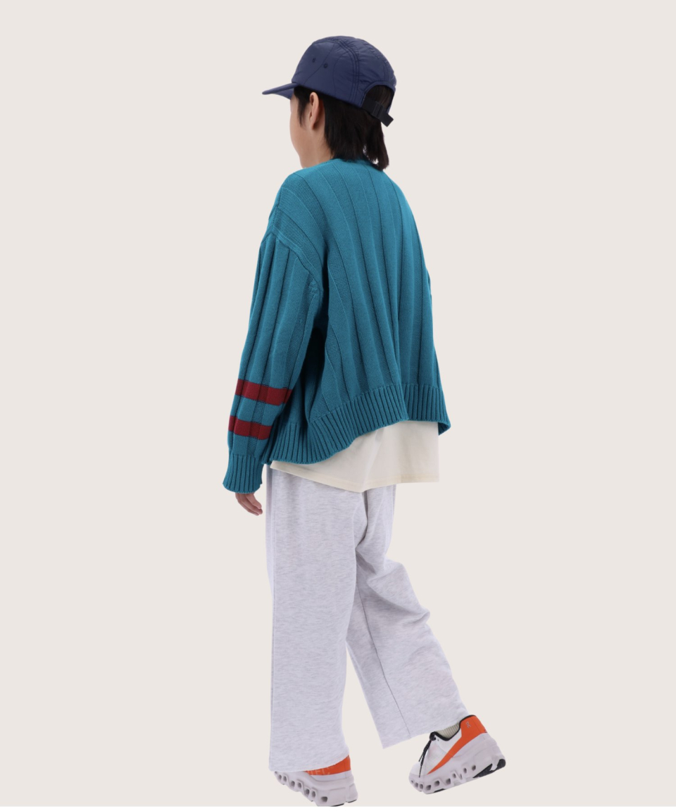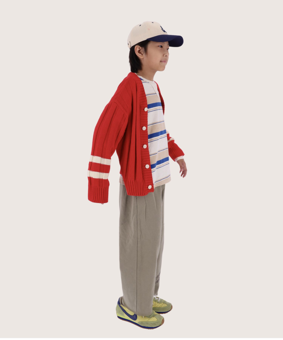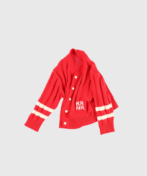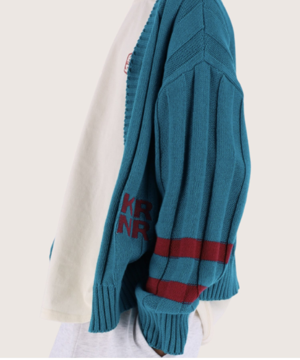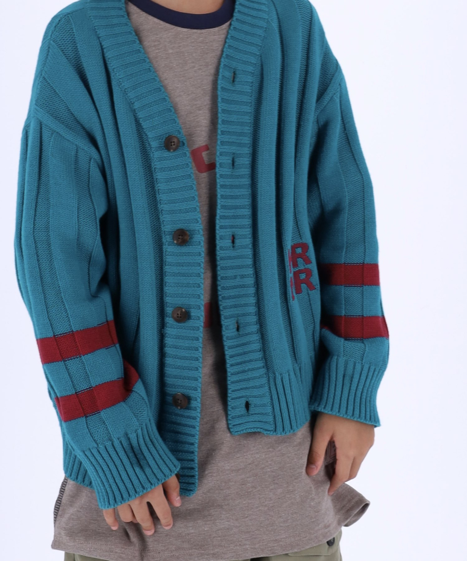 폴인 오버사이즈 스트라이프 니트 가디건 레드,틸블루