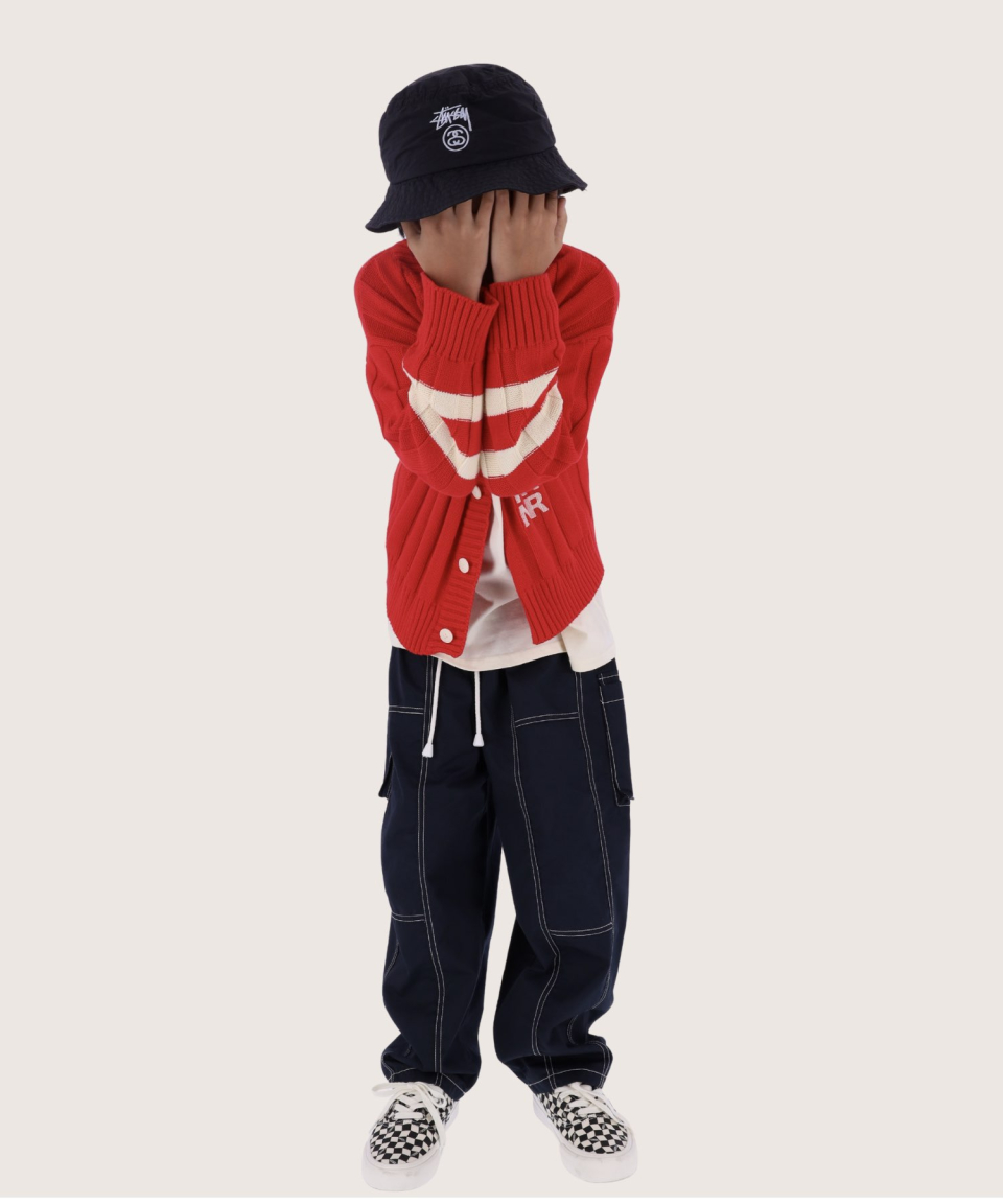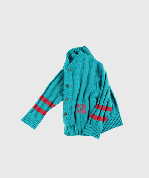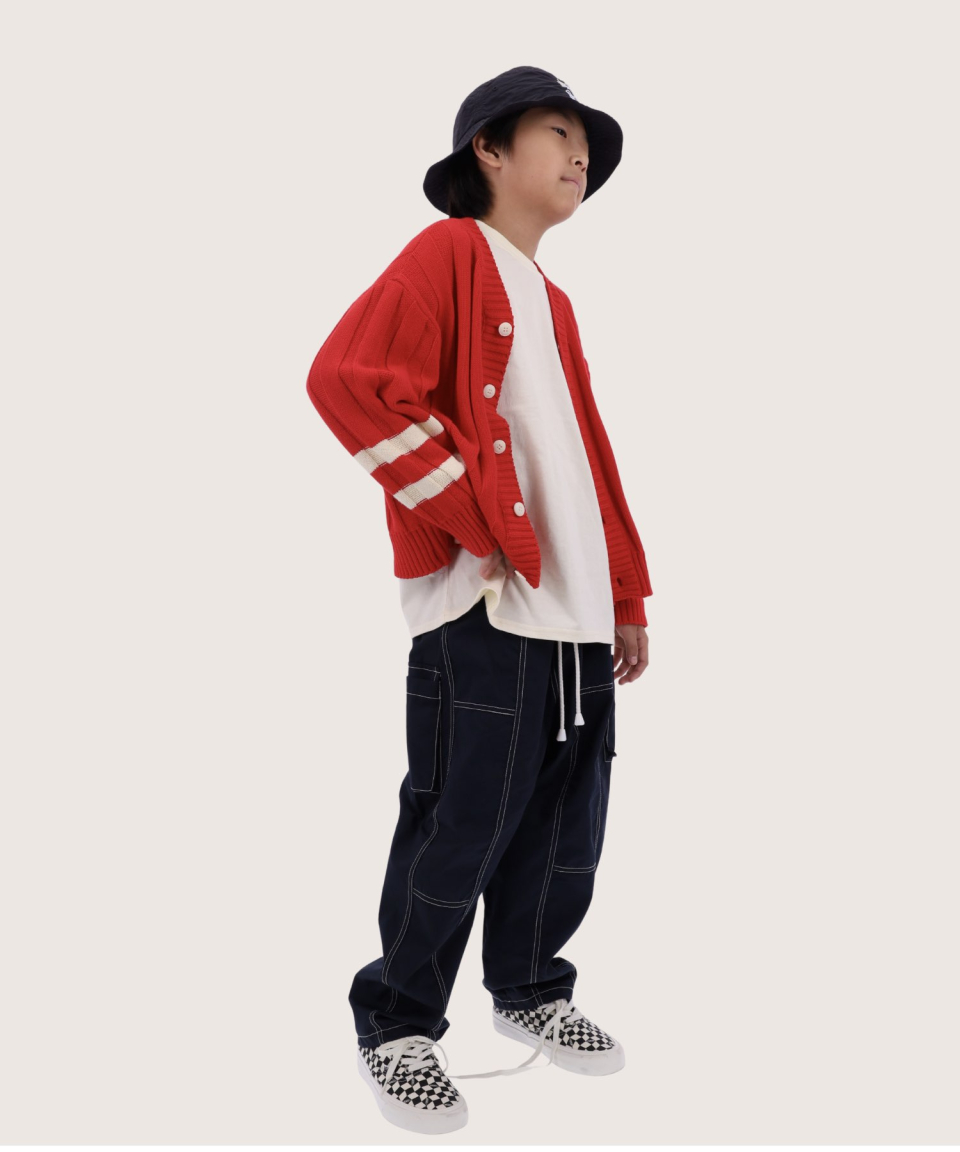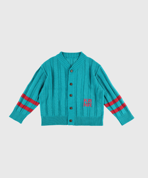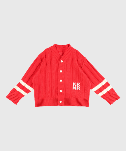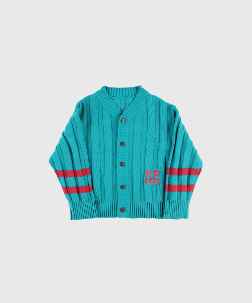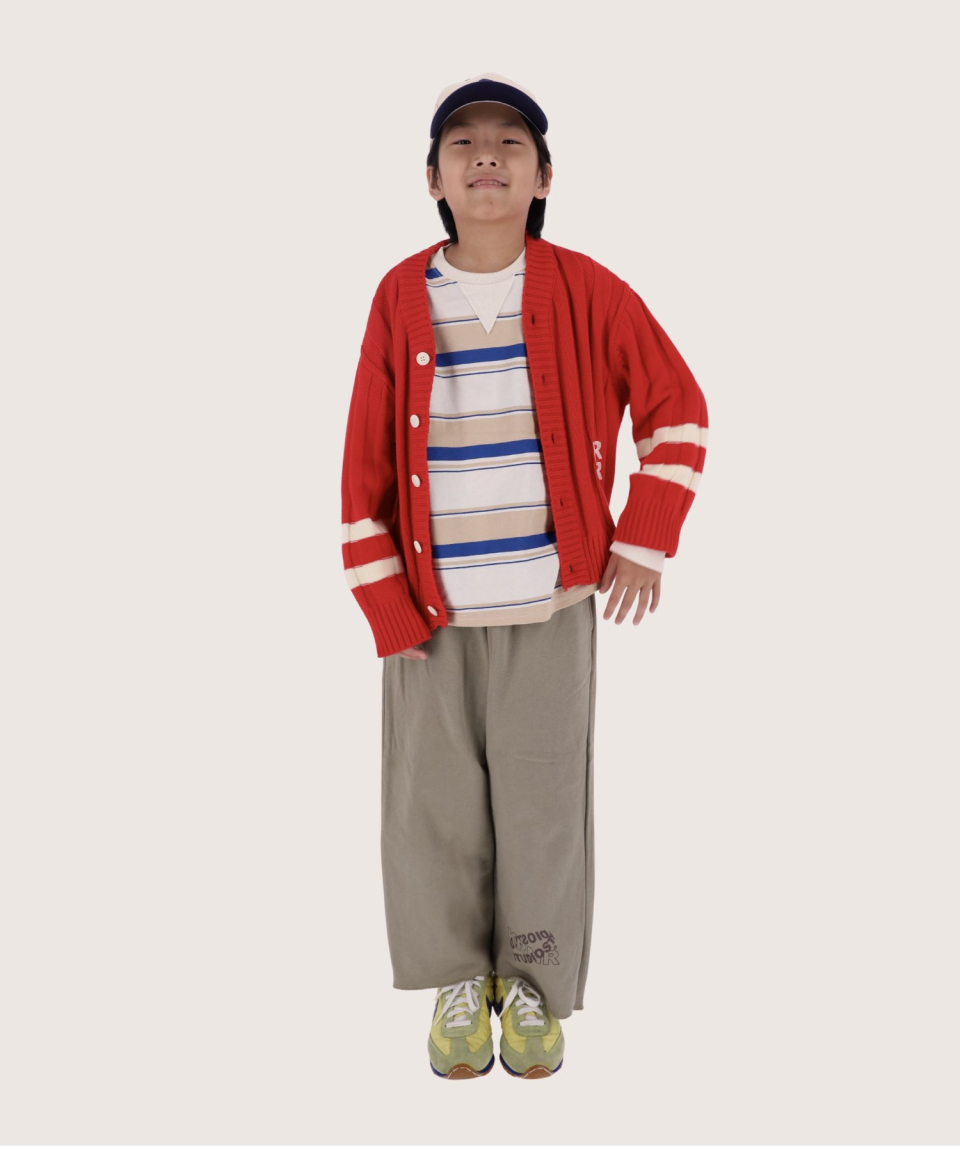 폴인 오버사이즈 스트라이프 니트 가디건 레드,틸블루